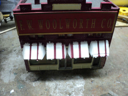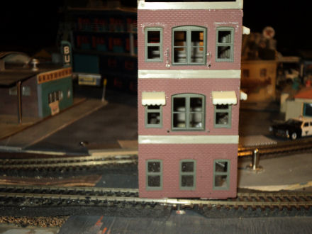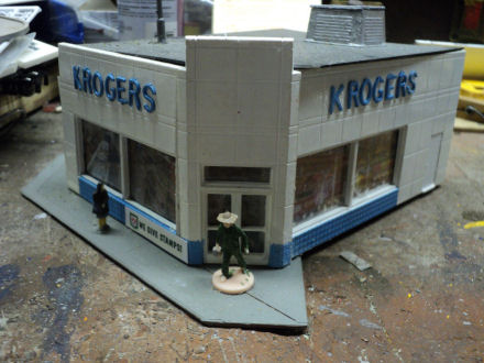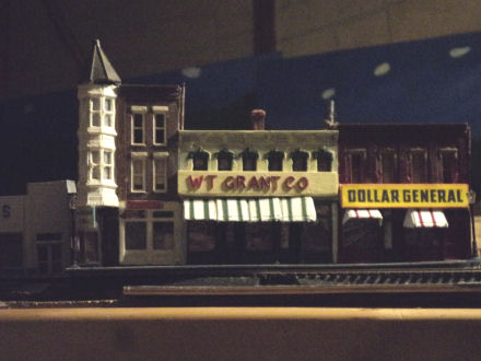 Hopefully Ive got this under building of the week feature in this forum because other wise I don't how to do so. Any how here some new buildings that I have added to this 2nd incarnation of this layout.Here is a shot of the pickard motors wood kit and how it fits into the layout complete with cars This my woolworths 5 and 10,every small town wants one of those Which begat me redoing what was the old woolworths to a grants store and redo of the front of the building new windows ,awings and a new sign for the dollar storeGot this at a flea market a year ago slapped some winders in it and it became my yard dormitory or railroad hotel bought it for a buck.And my krogers, every railroad town in the south had one of theseMy new whoscow for small town drunks like otis taylor can sleep one off on a saturday night bought this already built and the signage on it for 6.50