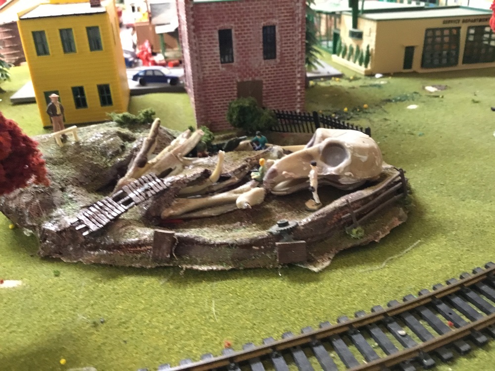One of my favorite vignettes, this excavation of a bird skull had been pushed to a back corner of Armadilloville, and I relocated it behind City Hall, where it will get a lot more views.