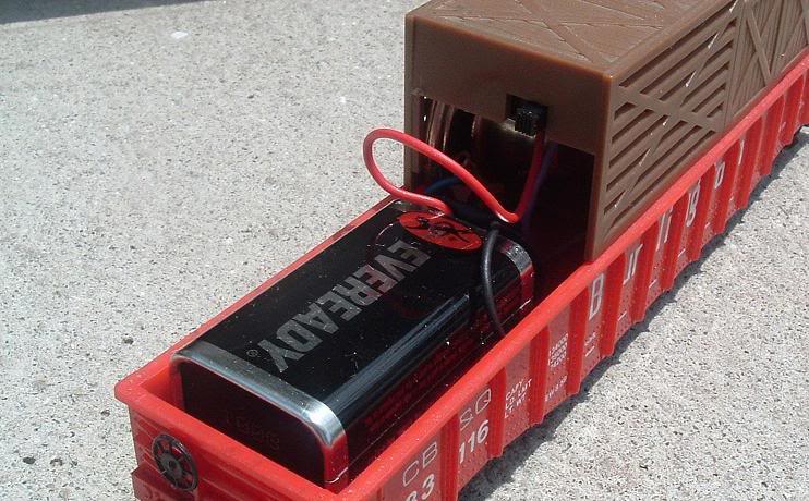 My favorite sound car was offered by IHC back in the early 90s. It has a speaker and electronic circuit that operates off of wipers on one of the axles. Another club member and I would pull them out on run night and lash them up to our favorite diesels when the BLI sound chips reached an unbearable crescendo.[;)]