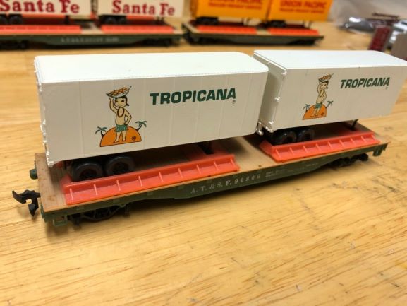 Actually, Ben. I have no custom rolling stock of any kind. My whole layout is just a tribute to the things i had as a kid, and the pieces i wish i had as a kid.😊. It’s a neat idea for someone else to do though. It could also be done with my other piggybacks such as Bubble Yum, Bekins, or True Value! 😊