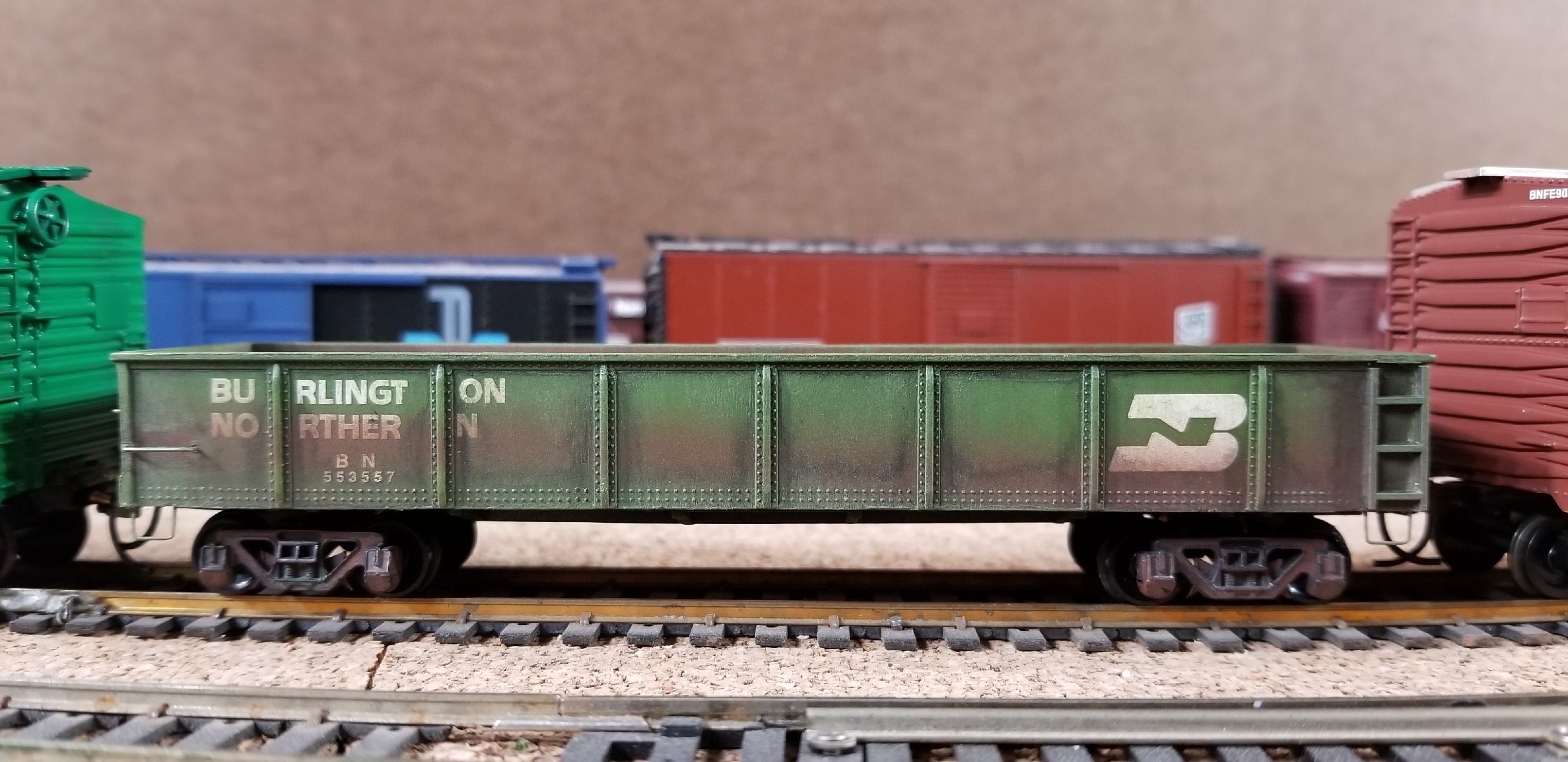 My car of the week is a Bachmann 40 foot gon that was in a lot of trains from the thrift store. It was missing wheels, couplers most of the steps and had chipped paint and tape residue . So I fixed it up and weathered it to cover the chips.