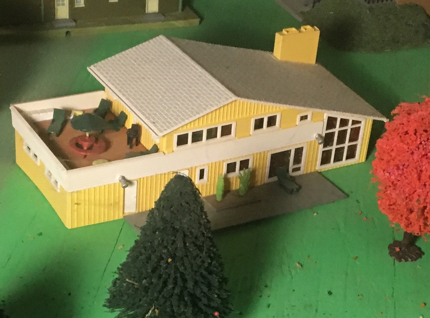 Love those cheezy plastic shrubs, Walt, a wonderful piece. Finally got Windows 10 to function to show off this bit of Suburbia in Armodilloville.