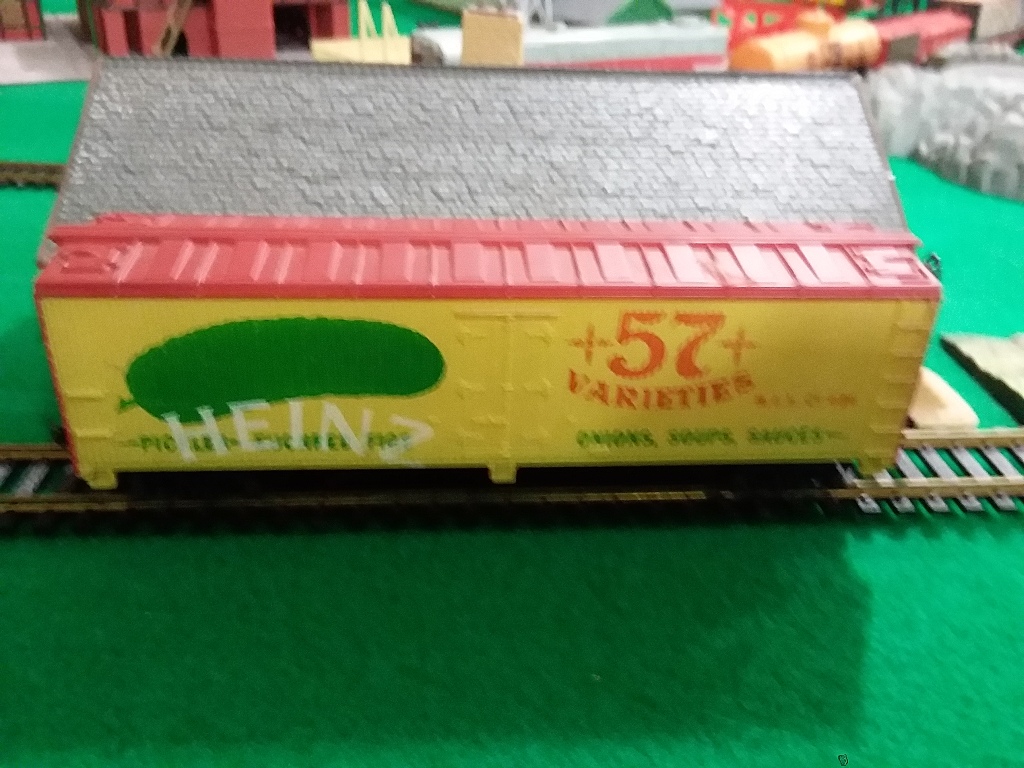 A rather unique find recently, as I was scrolling through various Ebay Tyco listings, I stumbled across an odd-looking Heinz reefer. I ended up bidding and winning for only like $6, and I couldn't be happier. It features a factory misprint on 1 side! The "Heinz" logo is below the pickle. Another piece of Tyco history saved.