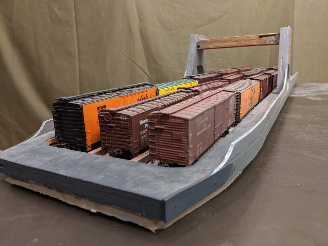 Here is a car carrier that I made a while ago in the shape of the car ferry Las Plumas. The prototype used to shuttle cars for the Western Pacific between Oakland and San Francisco.