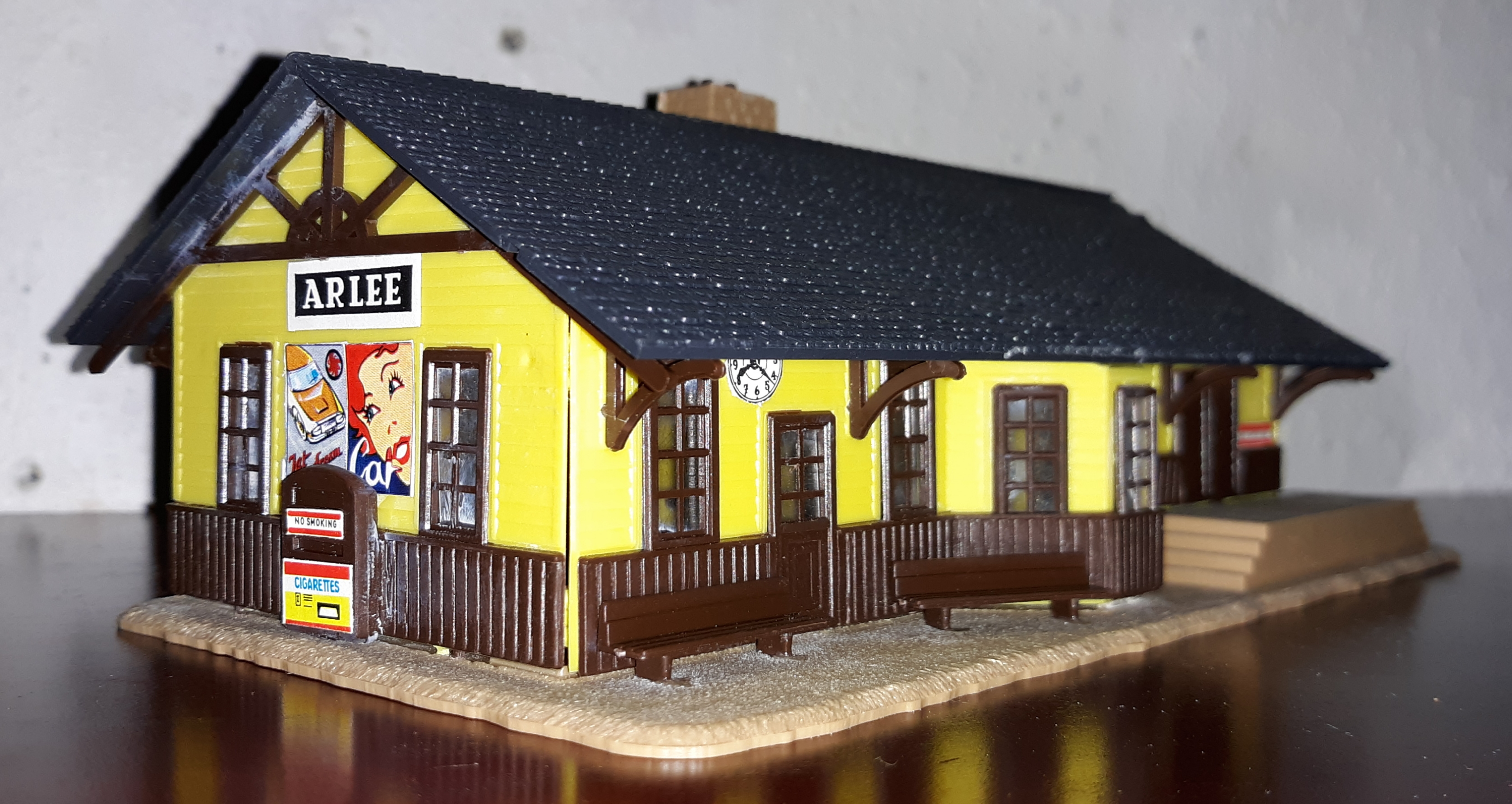 Here's my new Arlee Station Kit I just assembled tonight. (Mind the residual glue on the rafters, it's already been cleaned). I've always loved the country station look to this TycoKit, and I'm happy to finally have one...