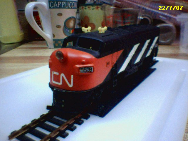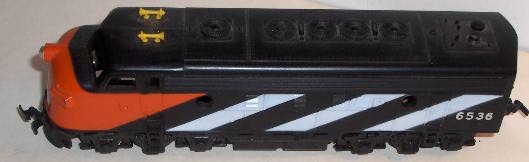 Also, you'll notice that in addition to numberboard inserts, the later F7's have a pair of roof grabs over the cab windows, and bulky, tacked-on looking stirrups.
