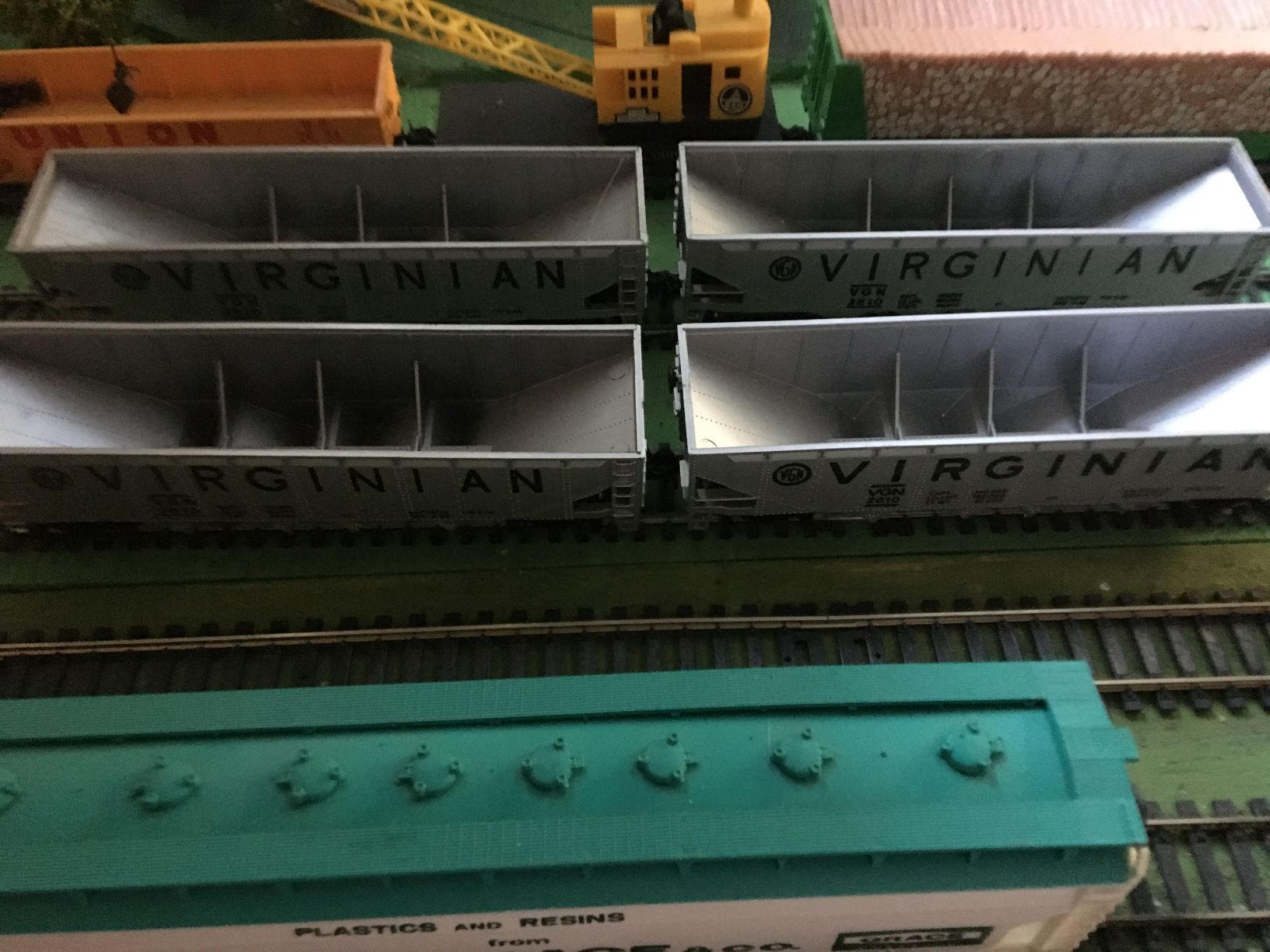My unusual set. I had no idea that I had 4 virginian hoppers until I was opening my final few cars in the drawer today...
