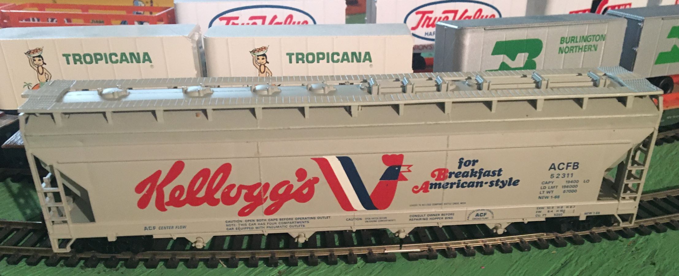 In yesterday's mail, was this Kellogg's hopper with the red lettering on the A & B. Not sure why I had wanted this one but I have it now, along with the common one and the AHM hopper of the same...