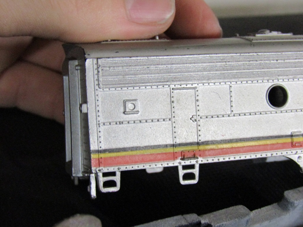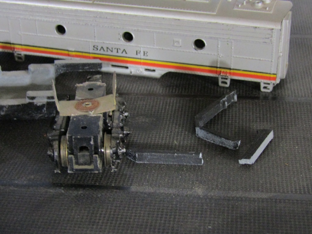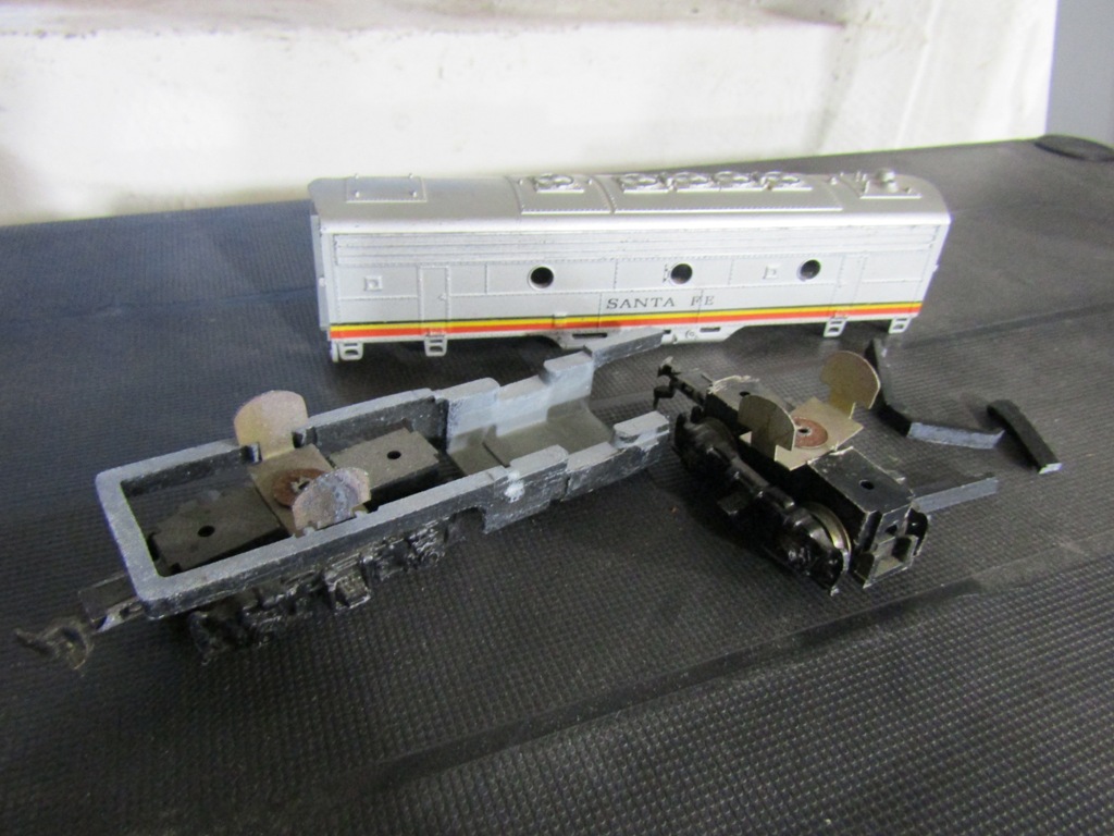 So, I've had this LifeLike dummy Santa Fe F9 B-unit for as long as I can remember, and I always thought it was strange how 1 truck seemed to move inside the dummy frame, while the opposite end of the shell itself was slightly popped out. Never really investigated why until literally tonight.