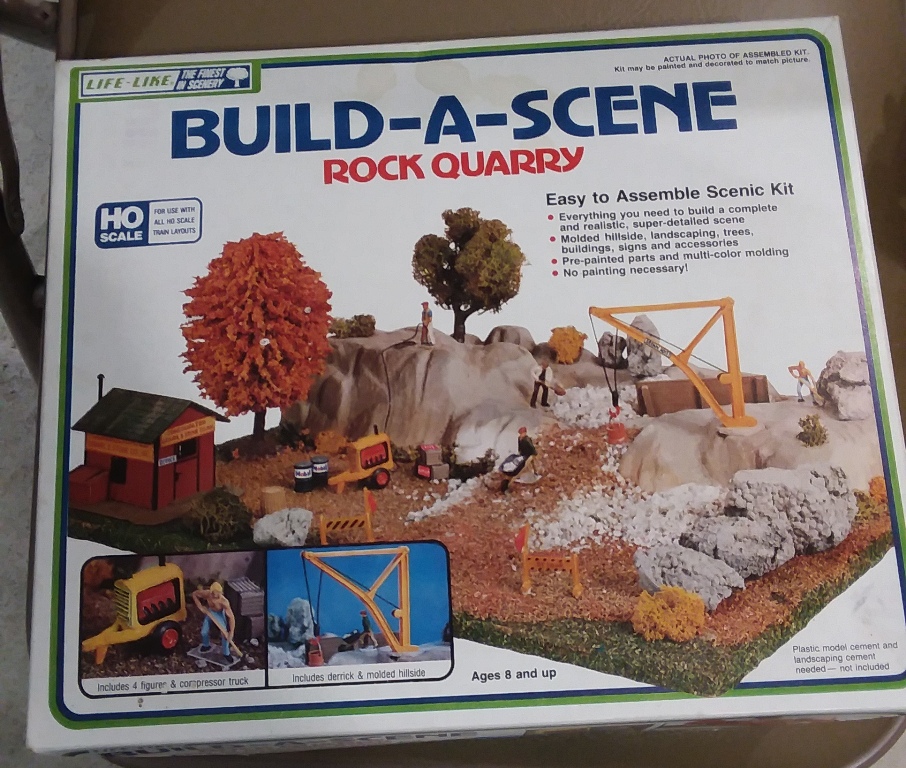 My AOTW offering is this LifeLike Build-A-Scene Quarry. My plan is to install this in the right-front or right-rear corner of the Ephrata Valley Railroad, however, as the "sandpaper" green base is a little too large for either region, I'll have to trim it a bit. Hope to get started on this sometime this weekend. "Let your light so shine before men, that they may see your good works, and glorify your Father which is in Heaven." - Matthew 5:16