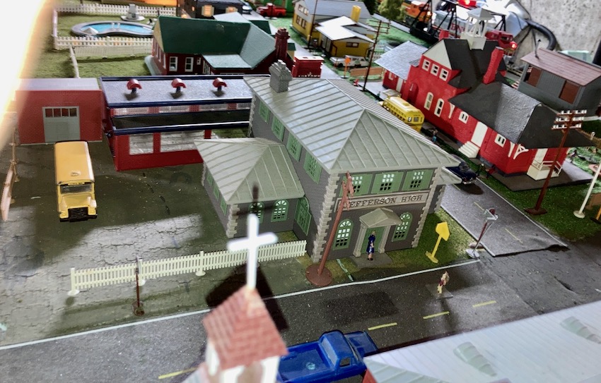 I set it up as an addition to my Atlas Jefferson High School building, along with bit of an incomplete "Railroad Hotel" kit to create the school's maintenance/receiving garage.