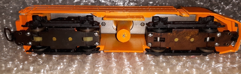 Ultimately, this Shark is a model of Tyco's black-over-orange livery which they did produce on their earliest diecast Sharks. The paint isn't indicative of being original, but hands down, this is very nice vintage Tyco locomotive, either the real deal or an extremely close imitation of Tyco's earliest known Shark scheme.