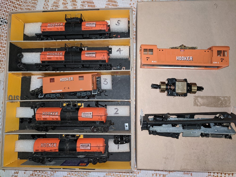 I enjoy electric more than all other motive forms, so this really is a fine booby prize, if I can piece it back together in working order. The graphics do not appear to be decals, and the double ended shell on the locomotive is like nothing I have ever seen- which I love it.