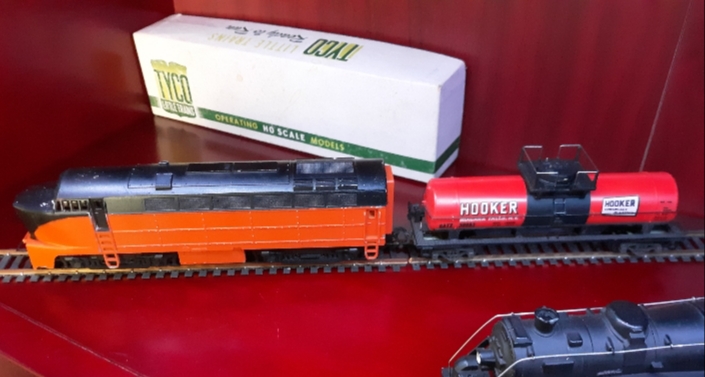 This beautiful Tyco tanker is from the 1950s, with loop and hook couplers. It's funny to think that around the time this thing was built some construction worker made the fatal mistake of digging too deep while building a school in Niagra Falls. A fatal mistake that would create a toxic nightmare for future residents...