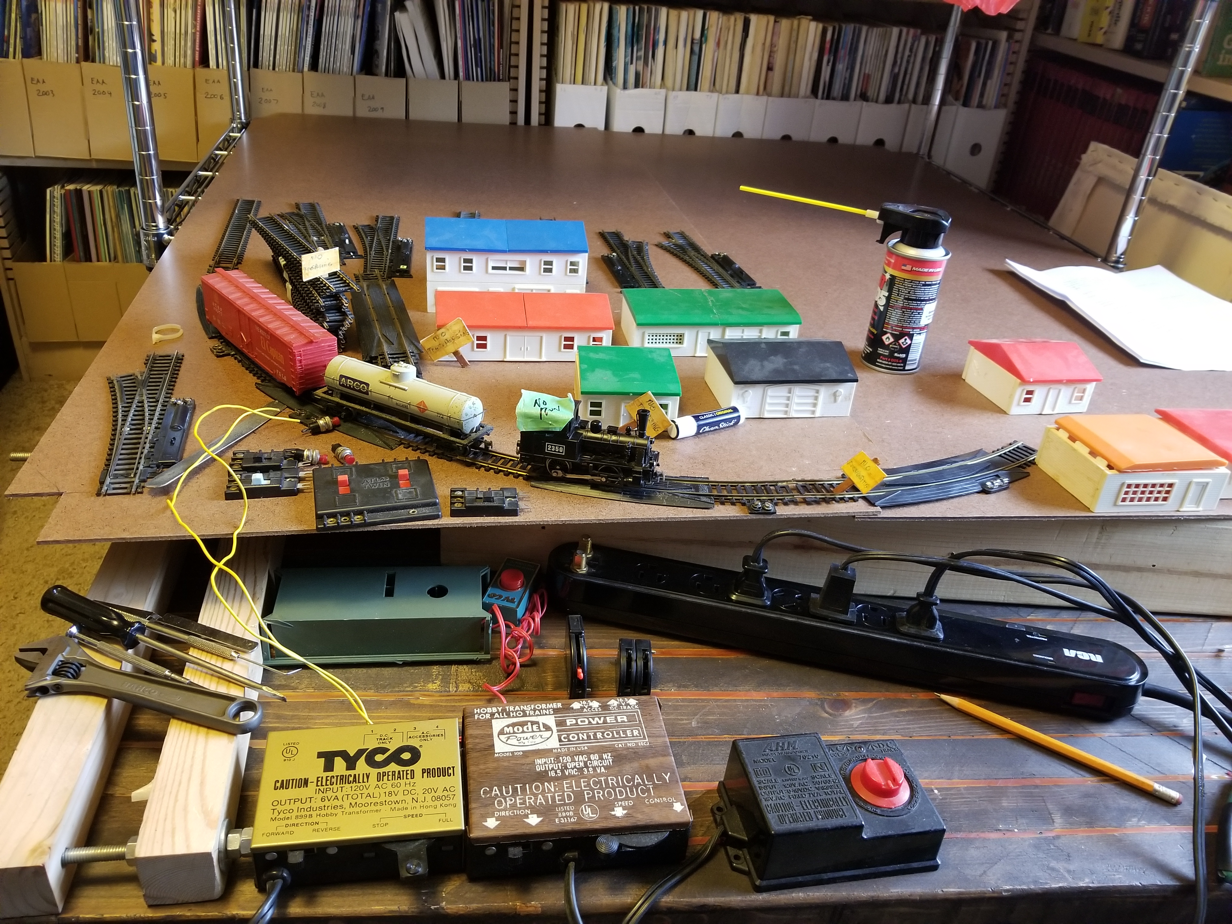 and testing and set up, more track en route via ebay, so not much fussing. most of it i'll end up replacing with upgrades