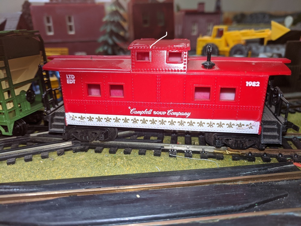 I always had it mind that a good Tyco Virginian was a rare find. Here a Campbell's Tomatoe Soup Car is pressed into service.
