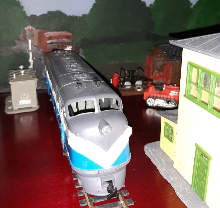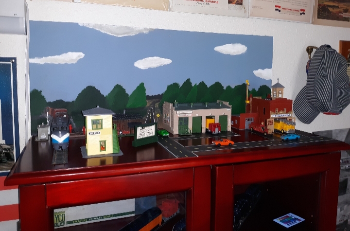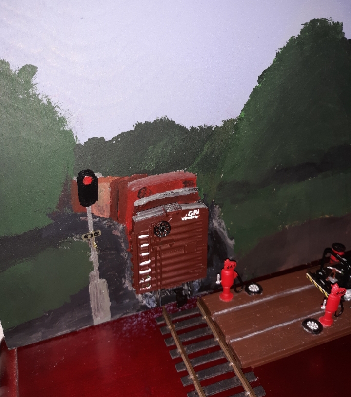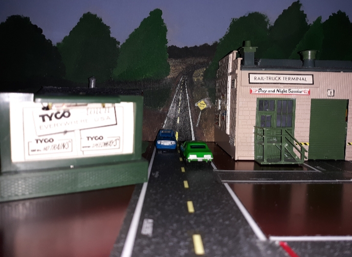 | That backdrop really adds some life to the scene, especially with the forced perspective of the road and the 3D effect of the train.