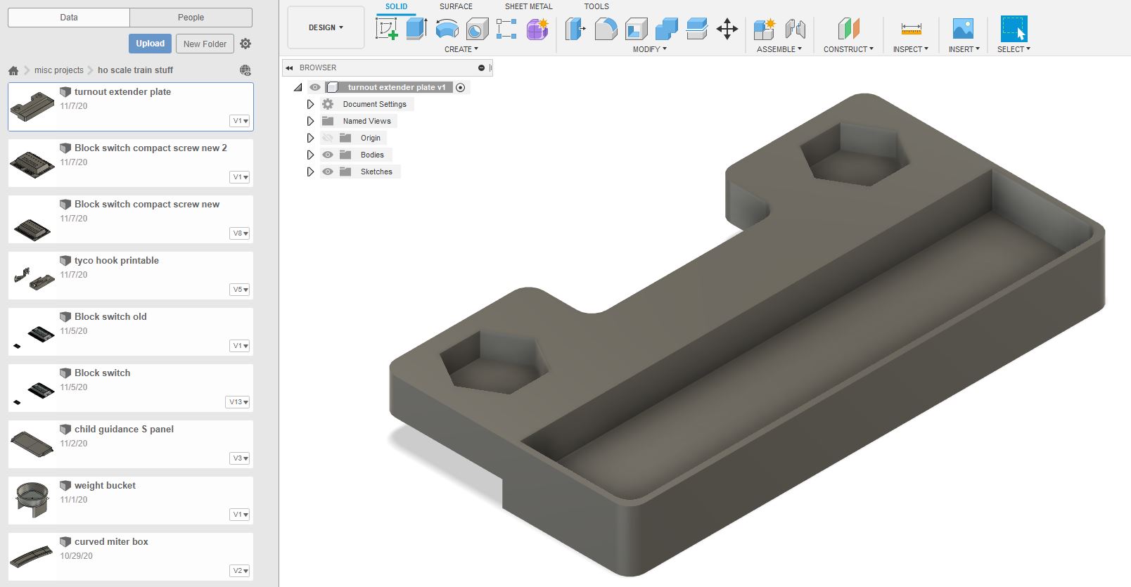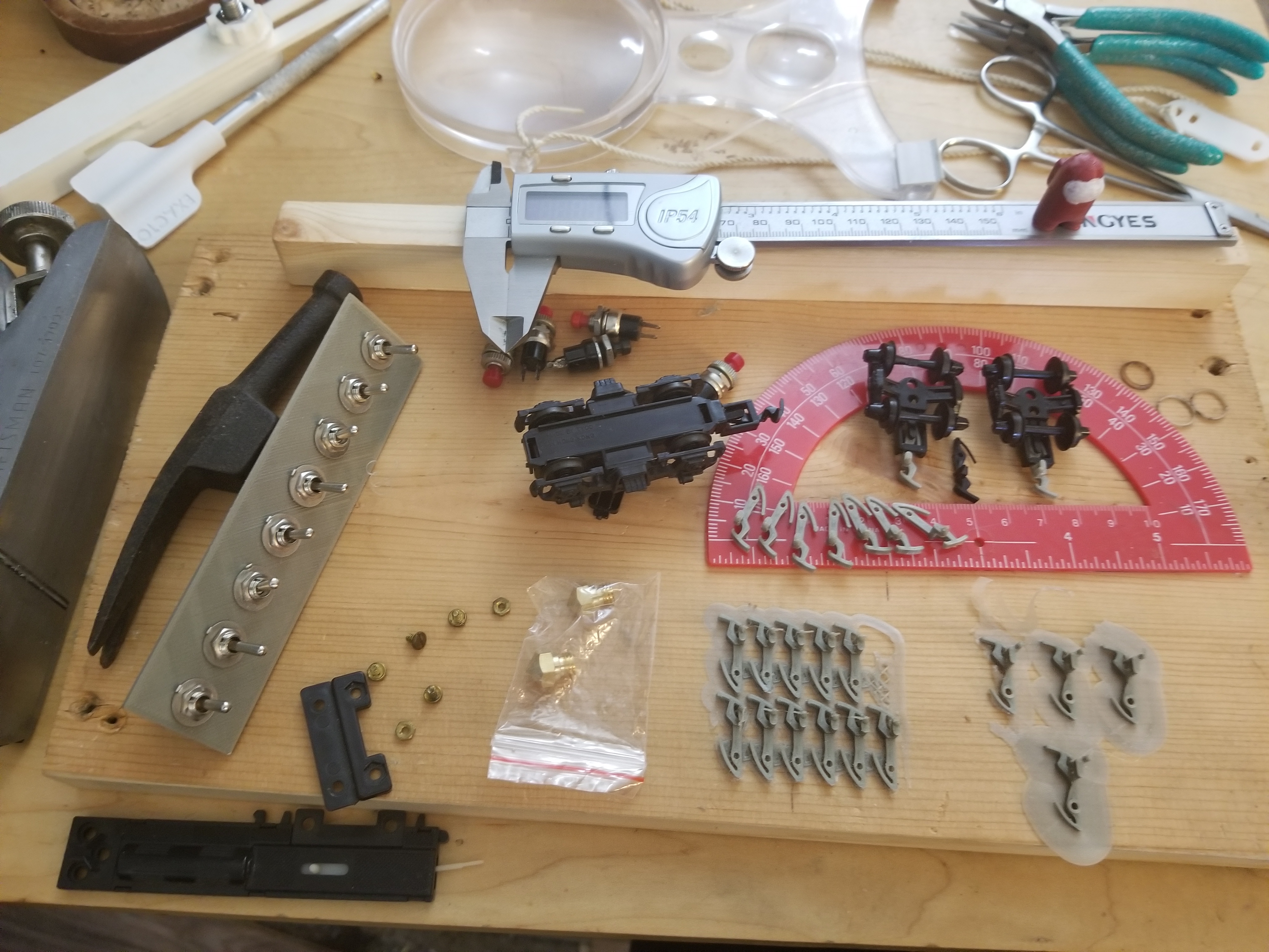 tyco horn hooks that I am trying to improve/replicate, with testing in trucks for comparison 0.2mm nozzles for one of my 3d printers to make higher detail prints need to measure and print some turnout control extender plates, as I am missing some and all my ten wheelers keep derailing on them(takes about 6 laps to do so) block and turnout control panel, had to redesign so I can fit all the screws in and still isolate them oh, and a handle for that lil hammerhead I found. don't need it, no other reason other than it is an incomplete tool