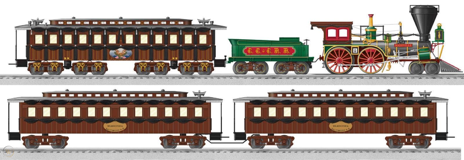 I believe lionel made a rendition of the funeral train. I remember the locomotive being green, brown, red, with silver and gold. A simple google search may result in some good photos.