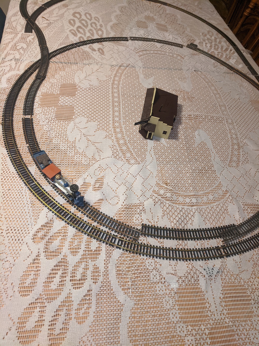 I am looking at squeezing in a stub spur at the base, but that will be determined by the ability of the locomotives, Bachmann, and Pola, to negotiate the frog without stalling.