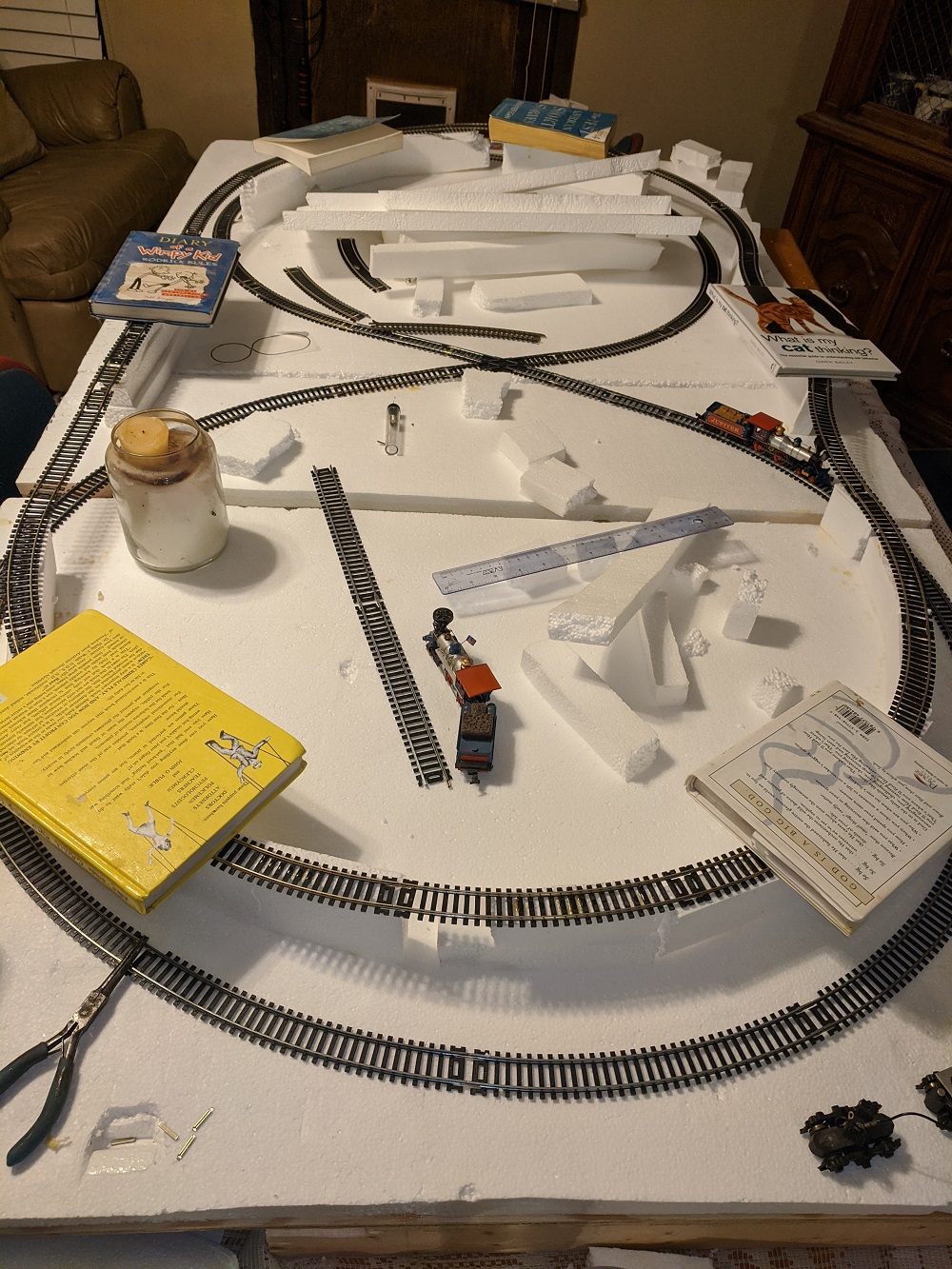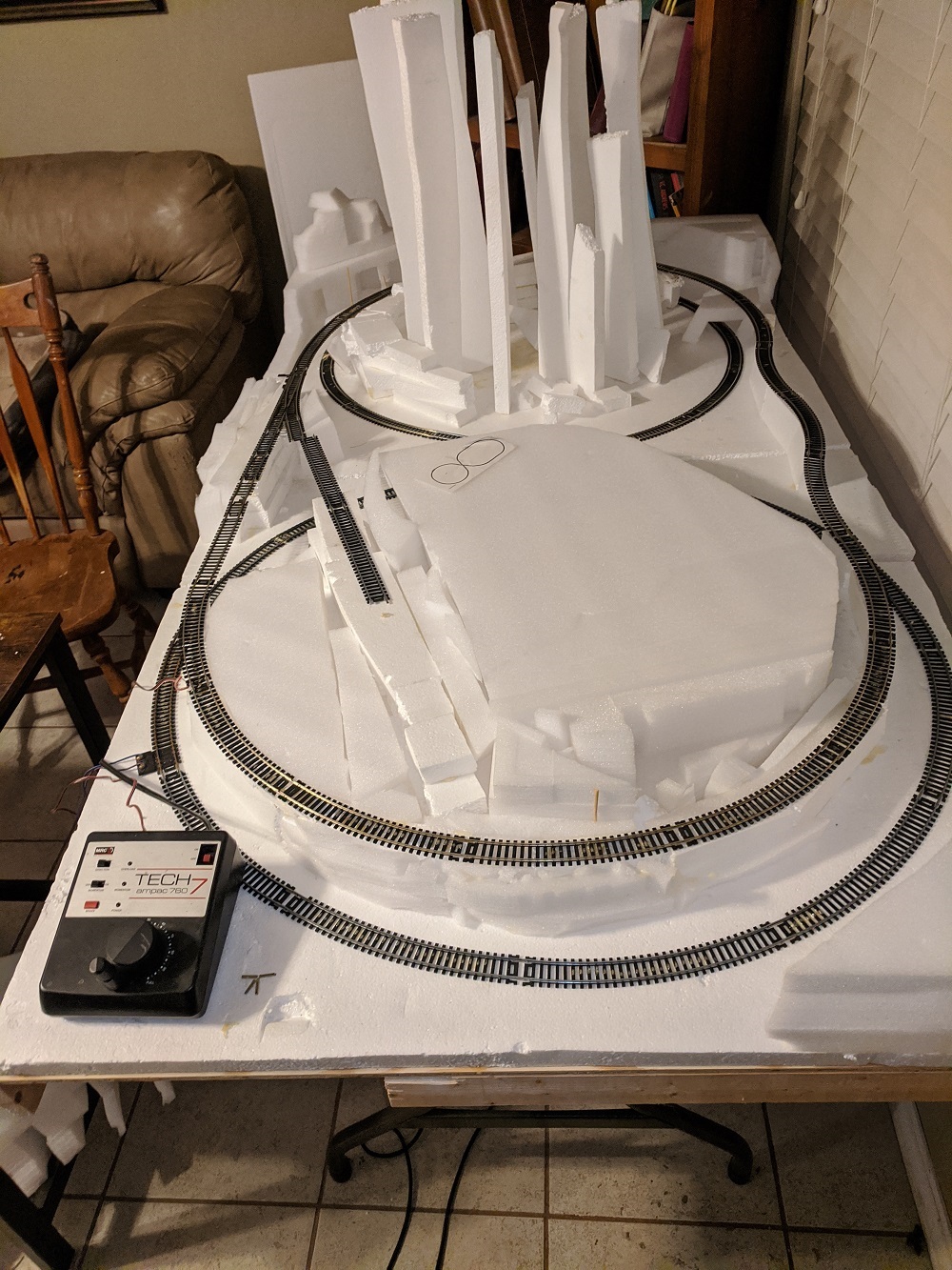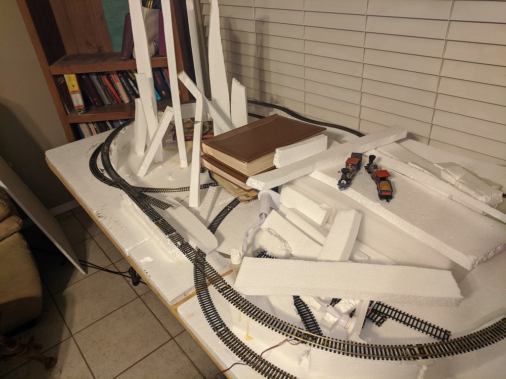 Good to know. Your Mom wouldn't be happy, but I took a kitchen knife, heated it on the stove, and used it to slice. Kind of kills the knife and stinks up the house for a while, but I understand there are electric Styrofoam cutters at Hobby Lobby type places that are more civilized. Definitely going to have some water effects, still figuring out the foundation of the baseboard, not as simple as first thought, but fixable. The key is to not get too heavy.