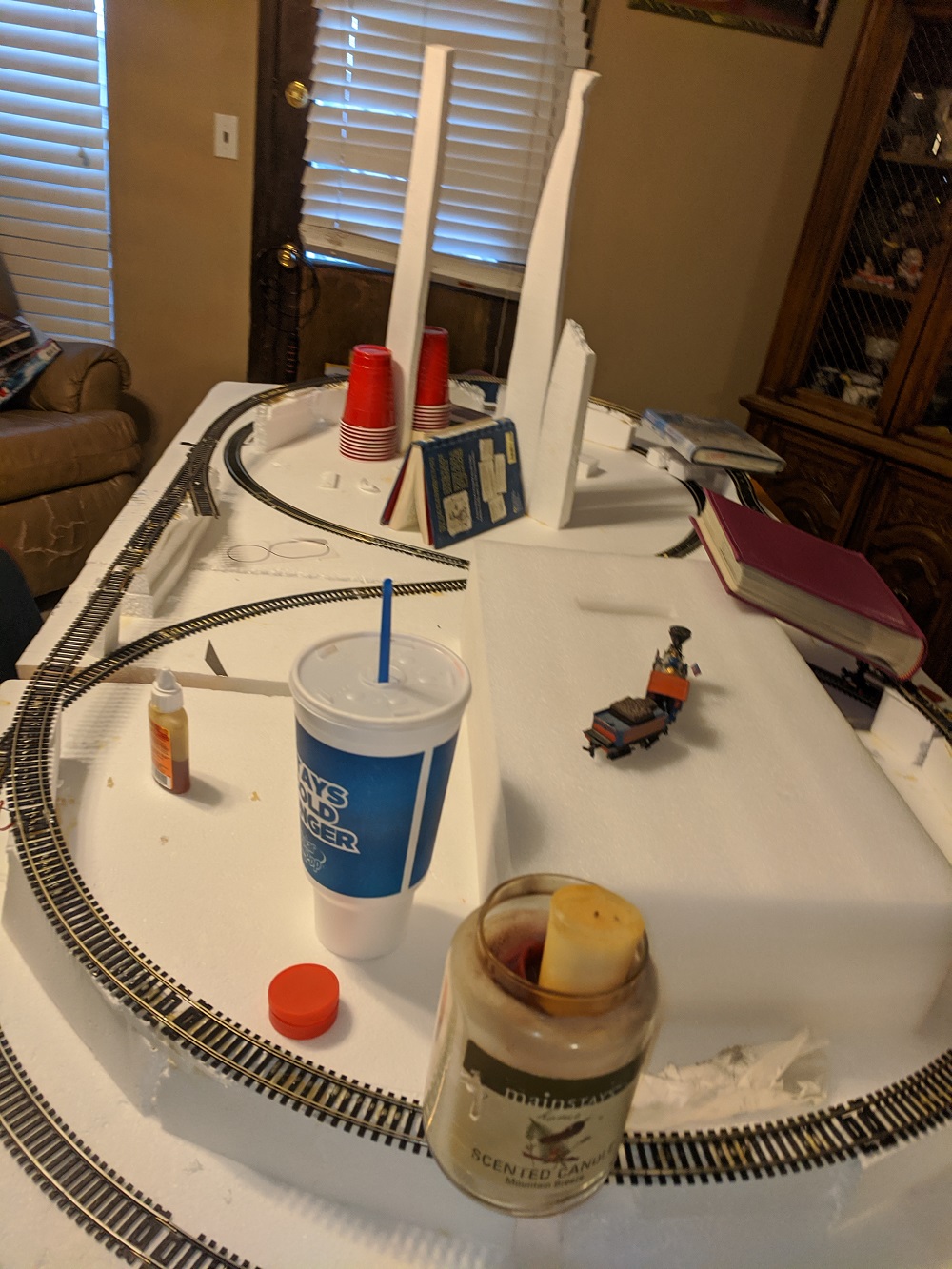 So, I am going to eventually work up some dramatic Golden, CO scenery towering over the tracks, and have the upper deck train cling to a cliffside like the most gorgeous Durango & Silverton line above the Animas river. One, or both, as both areas have differences in geology.