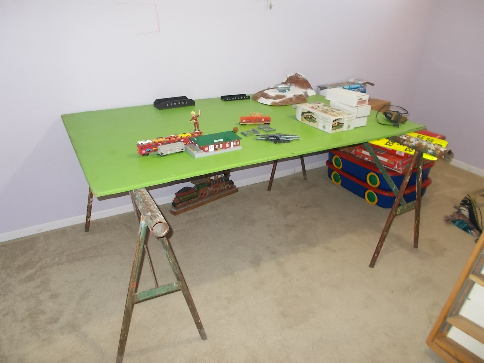 ah never mind I wanna set up my train layout NAOW! I'll scrape & paint the sawhorse in spring For now I gonna get 4x8 board before the weekend