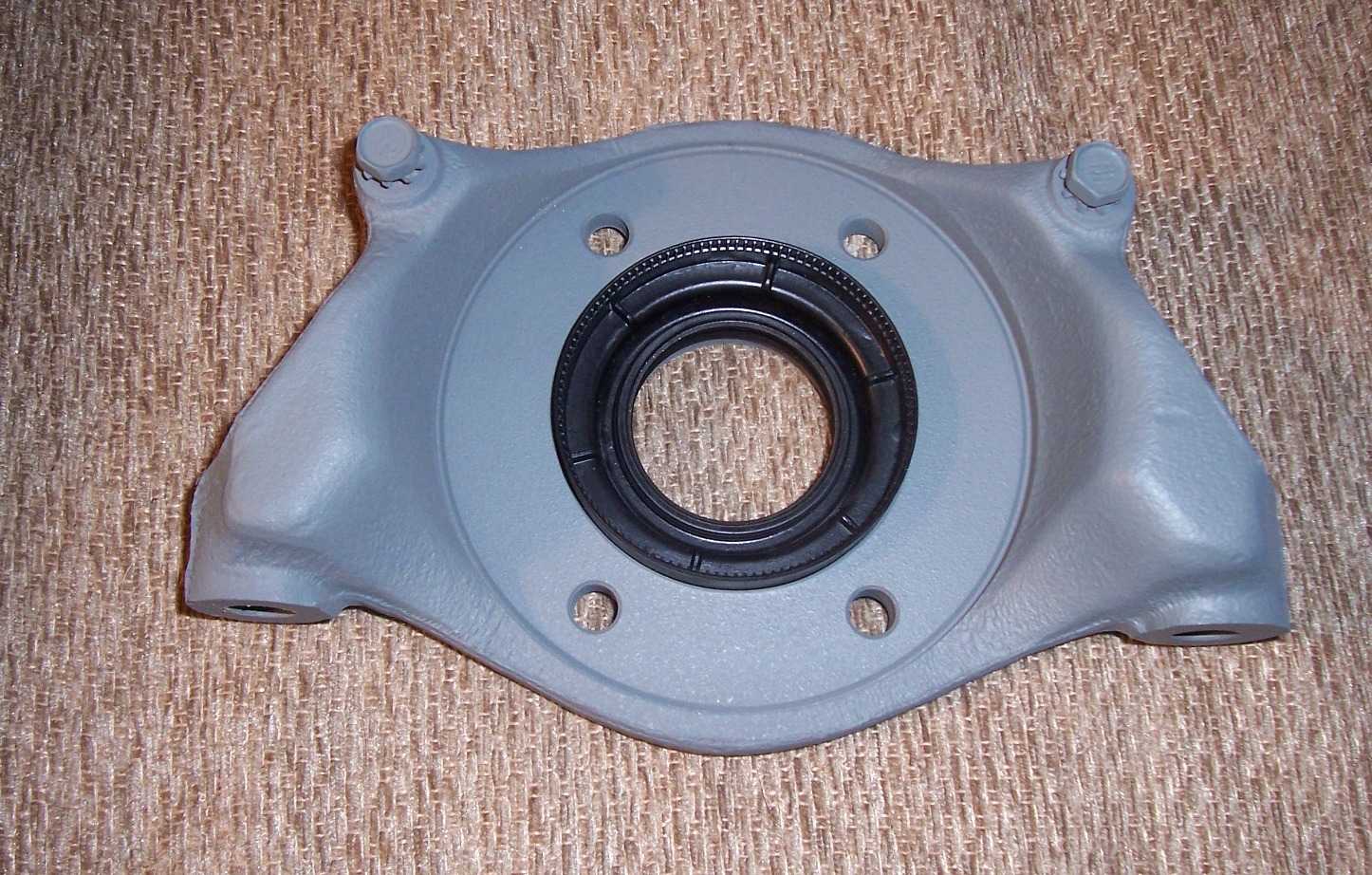 SANDBLASING RESULTS. Here is a series of 3 pics of an axle/brake bracket that I sandblasted. The rusty piece in lower pic, and the center pic shows the same piece after I sandblasted it spotless to bare metal. The top pic is primed with PPG DP-40 gray green epoxy primer with new rubber seal... This piece is 41 years old...