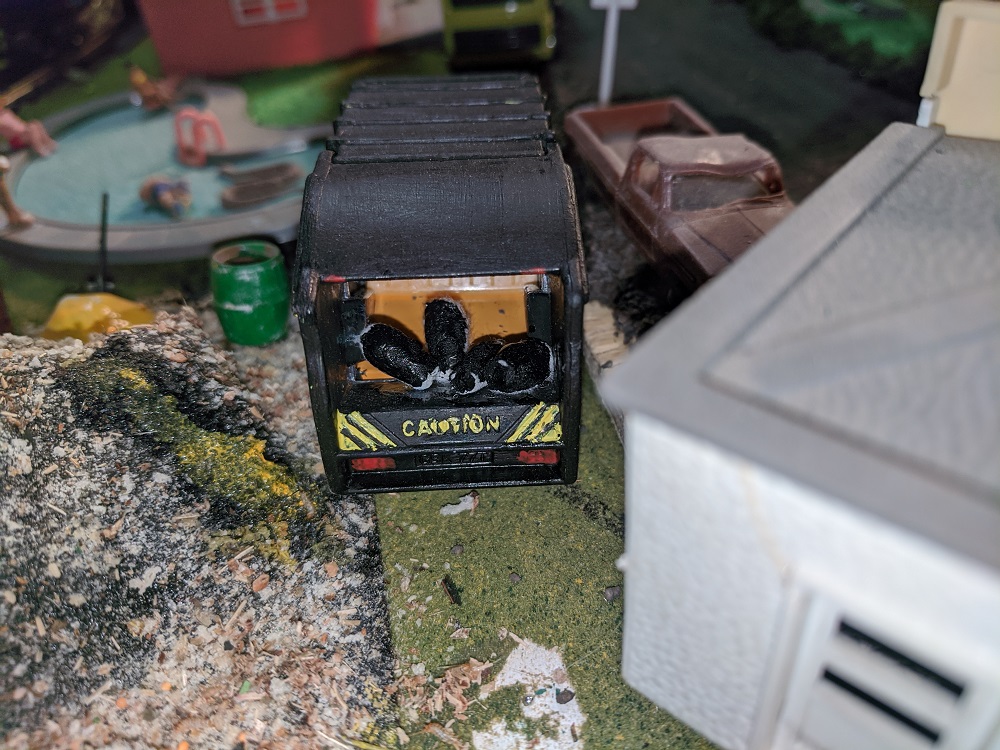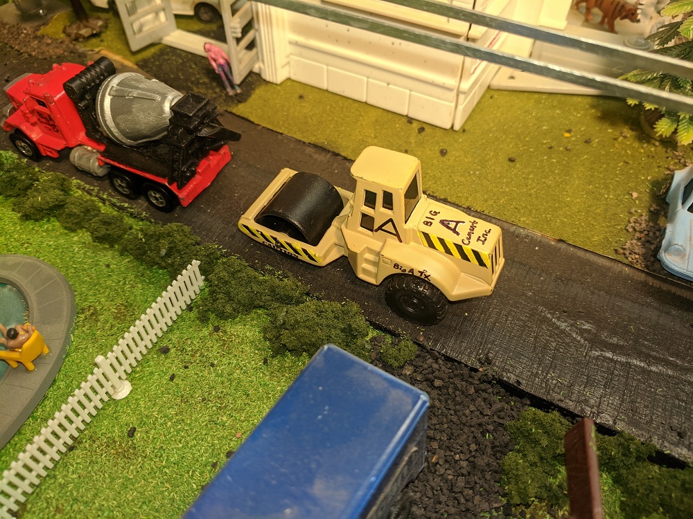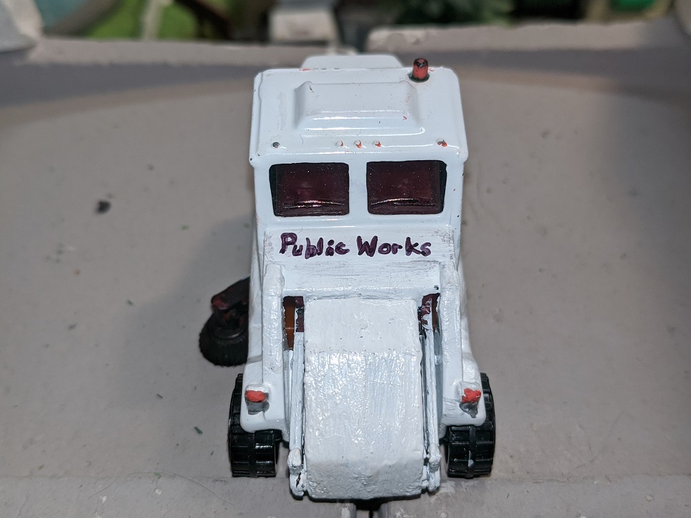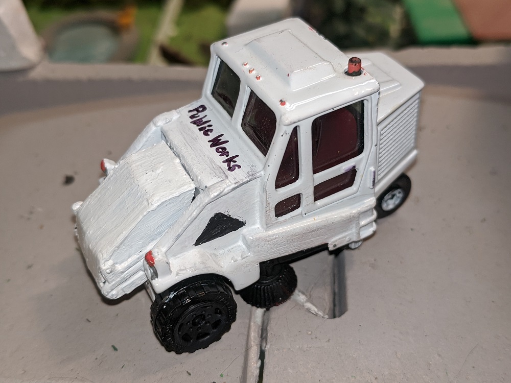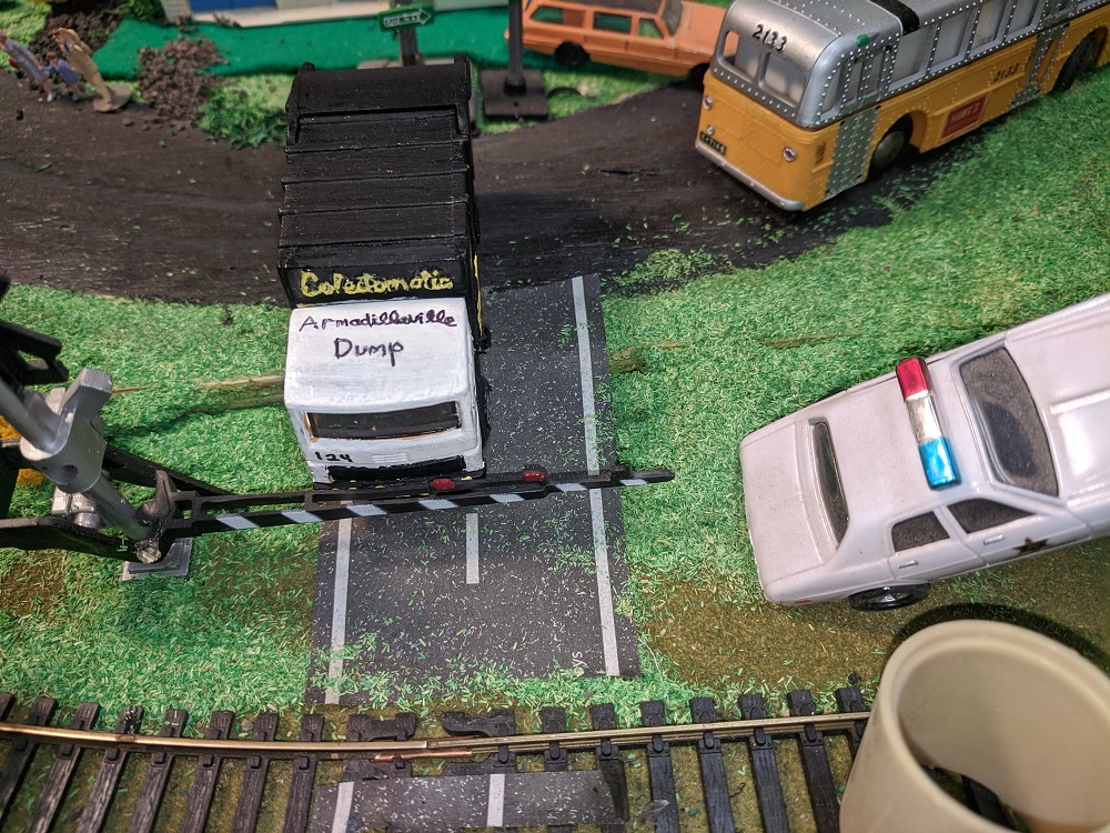 One of the pleasures of Armodilloville is that so many different model railroad artists and collectors have contributed to it. RP Model Railroads, who has done spectacular work with micro layouts and pure Tyco collecting- beyond anyone I've ever heard or seen- provided many of the Hotwheels that underwent a perfect transformation under the steady hand of A-A-Ron. The Hot Wheels were great pieces in their own right, but A-A-Ron transformed them to the next level.