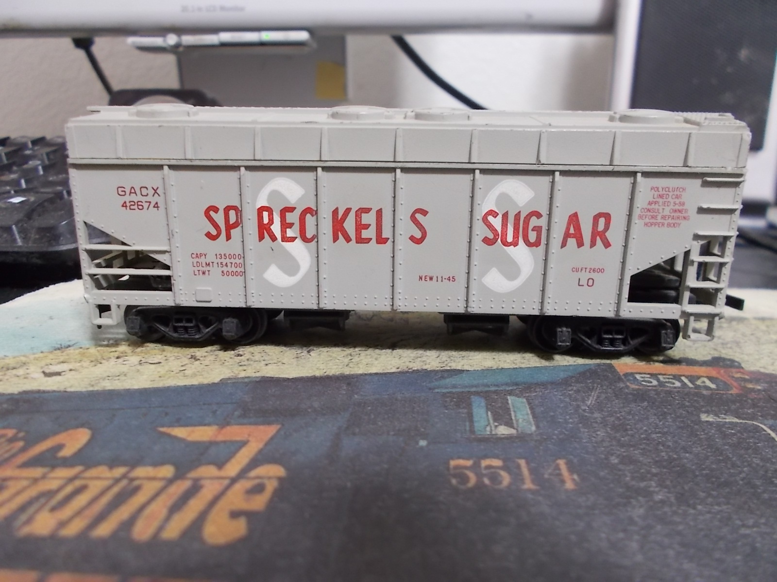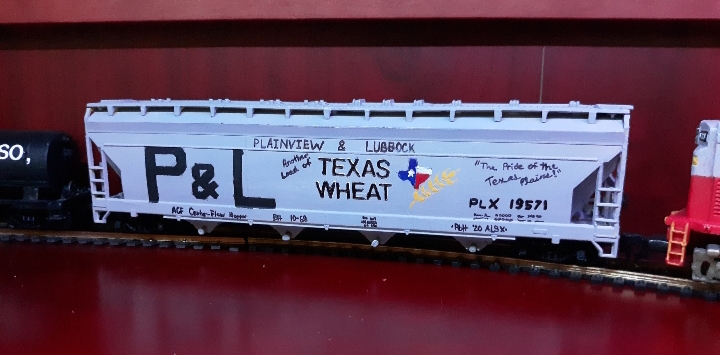 My Second COTW will be a project car I just finished a half an hour ago. This car used to be an Old Maid Hopper, but based on how I changed up my roster, this is no longer needed, and it takes to much space to have two. Therefore, this unit will now serve Texas wheat farmers on the P&L.