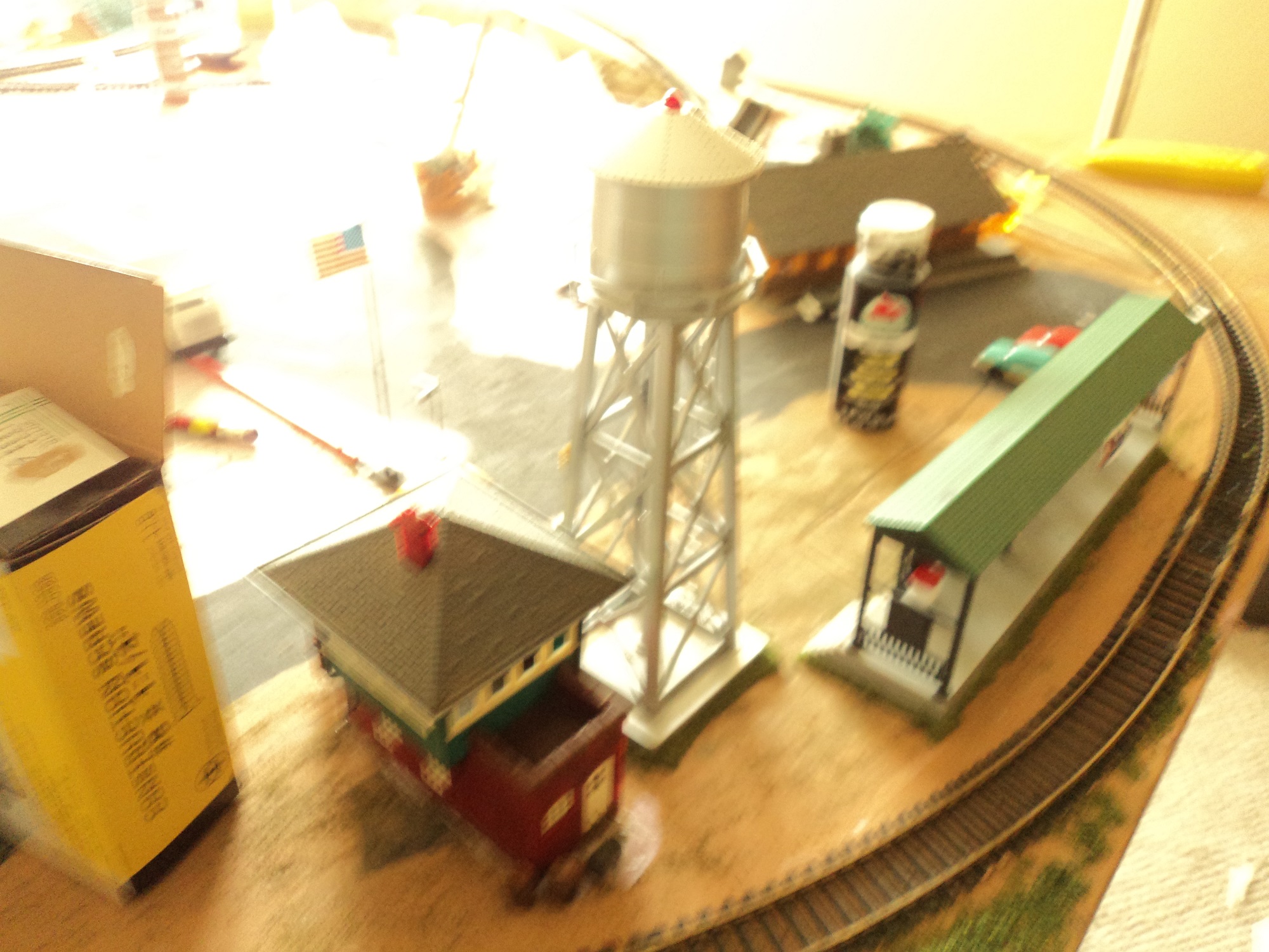 Here was the original town and station area. This layout primarily used old brass track from the 60s and 70s, and I had many issues with electrical pickup which added to the frustration