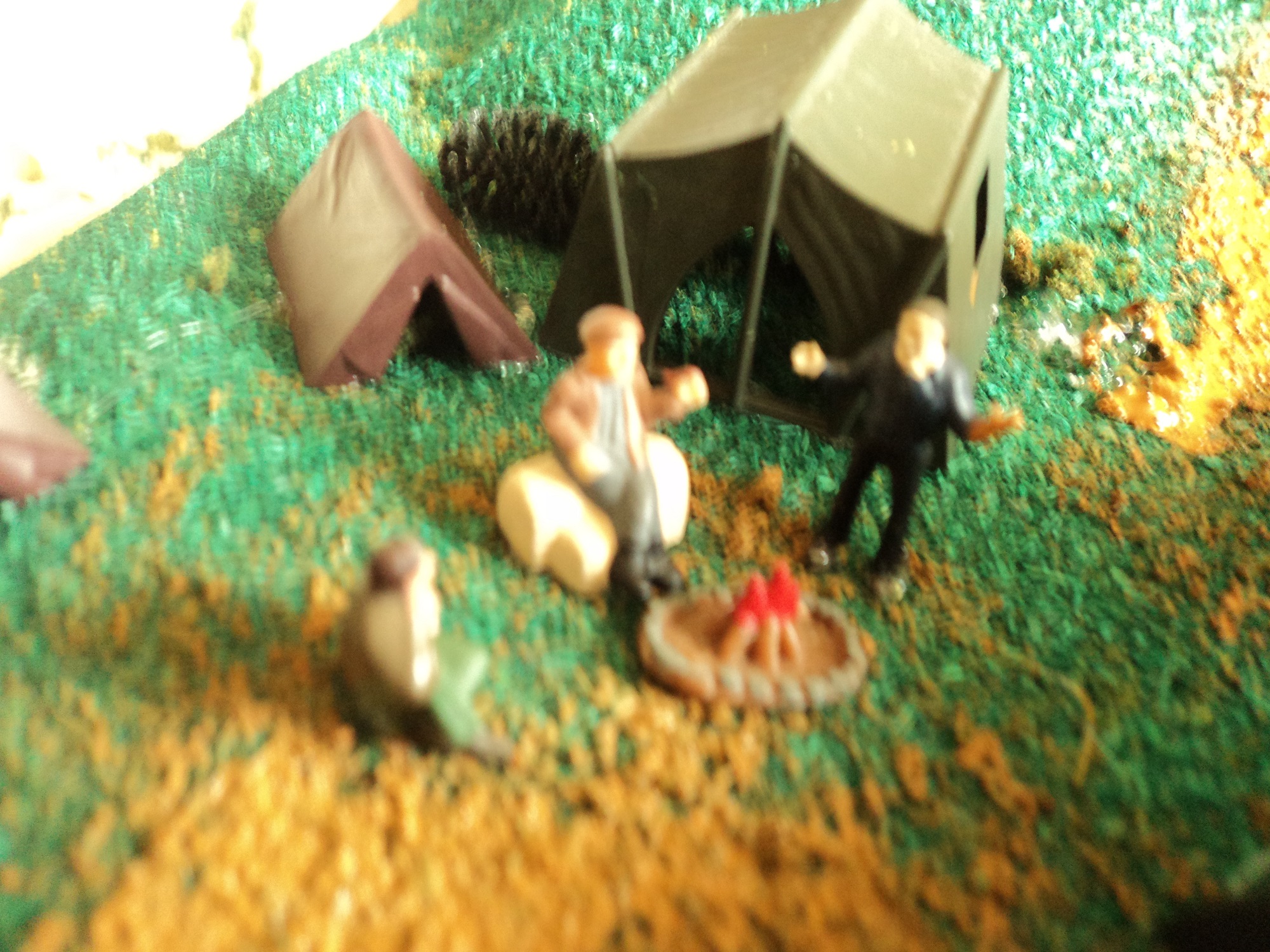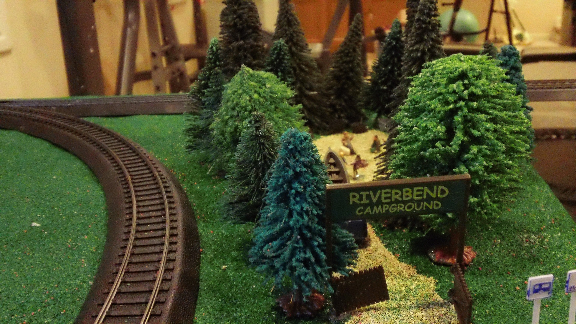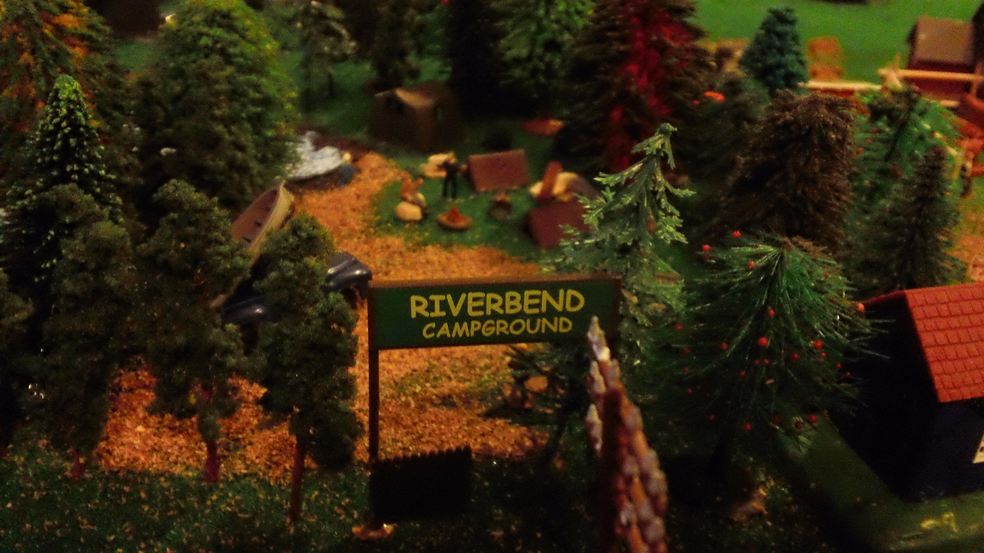 A campground scene. I have always been an outdoor guy and have loved camping, so in pretty much all of my layouts, you'll see some sort of camp scene --------------------------------------------------------------------------------------------------------------- On to my second layout, from around eight years ago or so: