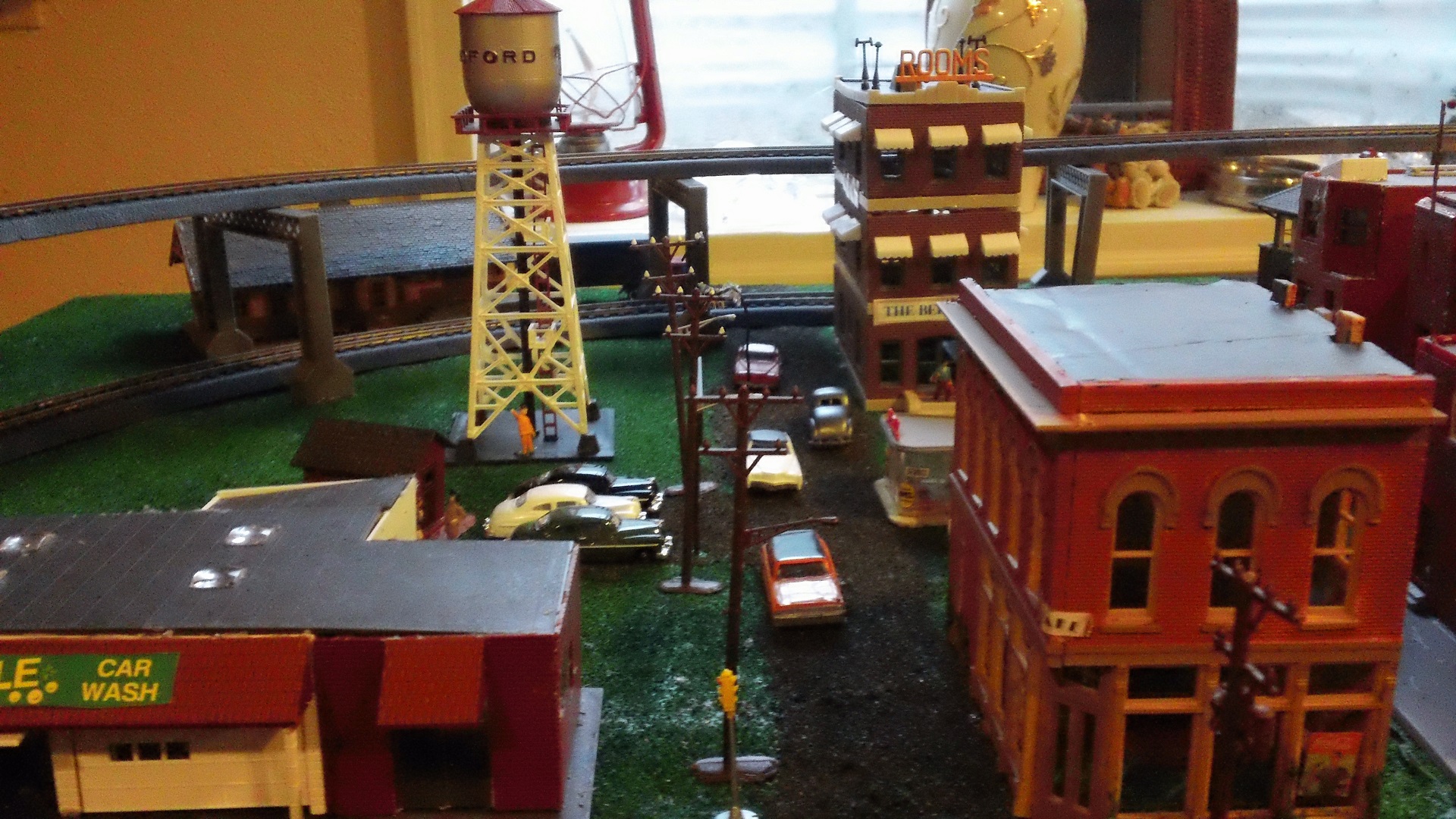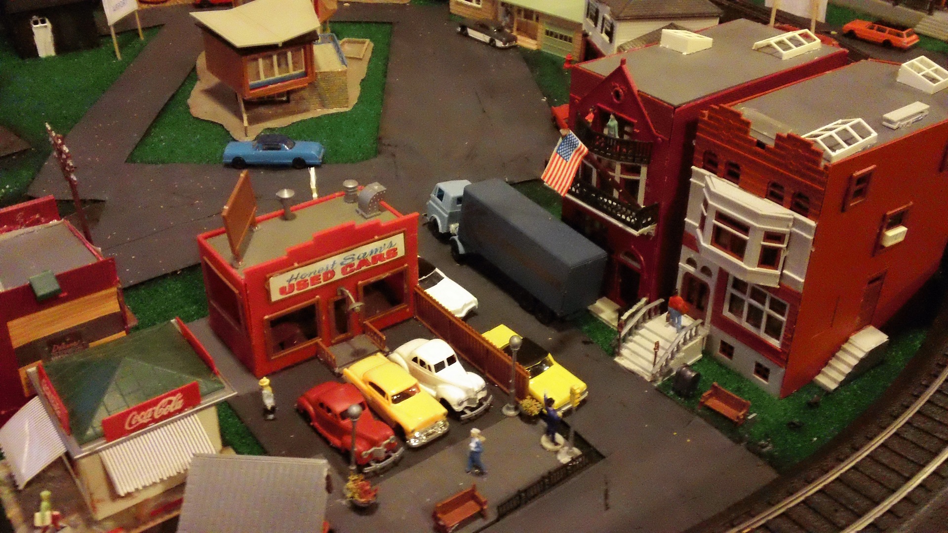 The downtown area of this former layout. One thing I regret is no longer having all of the buildings and accessories I used to have on my old layouts. Pretty much all of the buildings in these former layouts have been lost, used for parts, sold, or just lost in the sands of time.