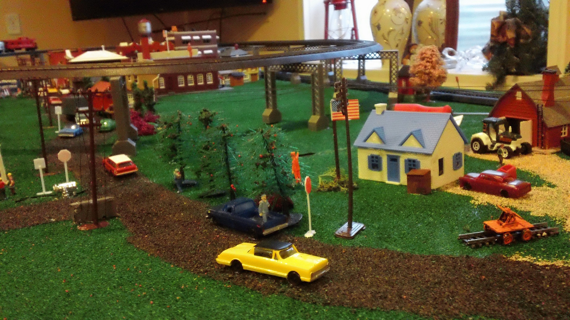 And of course, the 1950s plasticville barn once again makes an appearance