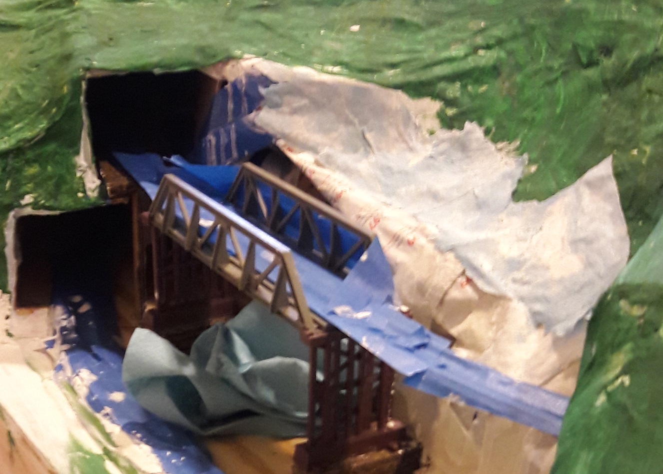 I'll start here with my first "real" layout, a 4x8 which I constructed ~10 years ago. I never got very far on this project as I was experimenting with a lot of different techniques and ended up scrapping the project, but I did get to complete a few scenes (forgive me for the subpar photography, the camera I had at the time was from the 90s )