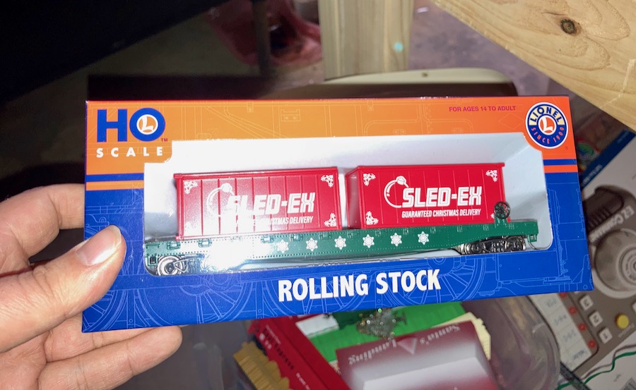 I was hoping this would've arrived before Christmas, but something's been screwy with USPS lately (the pandemic combined with the holiday rush, obviously) and so it didn't arrive until today. Oh well, I'll use this next year... A new Lionel HO Christmas freight car! It's the old Model Power heavyweight flatcar with containers (as Lionel acquired the Model Power molds and assets from MRC a couple of years ago.) Lionel upgraded it with knuckle couplers and what appear to be metal wheels! Lionel will be coming out with more upgraded Model Power flat cars during the coming year, and I plan to get a few more as well!