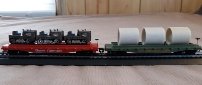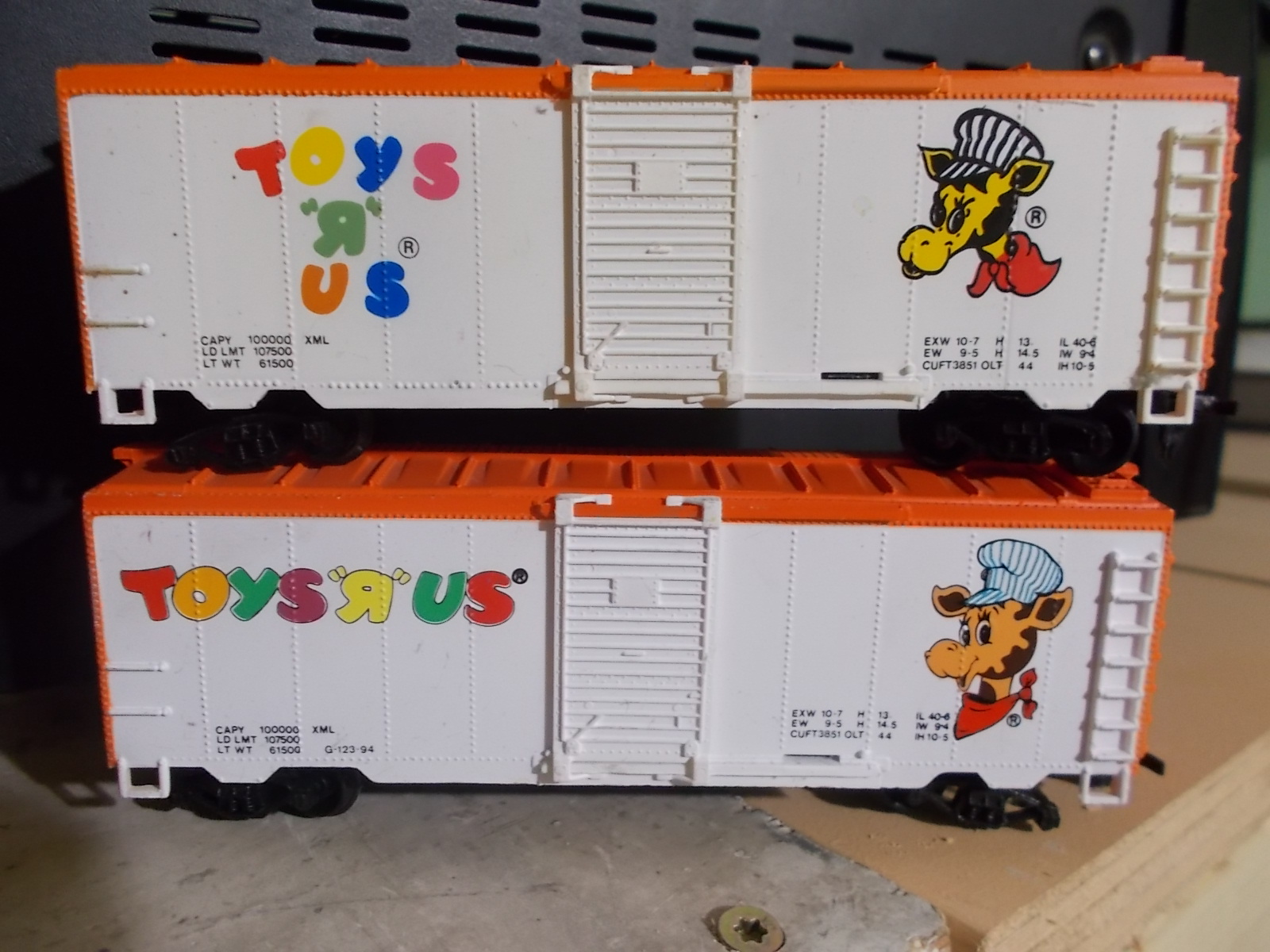 I do believe, at lest for a time, those Toys 'R' Us box cars were high dollar collector items. The reefer version is not. I do like the vintage GN box, and the classic flats, with brake stanchions (hurray for break stanchions!) are sweet Tyco.