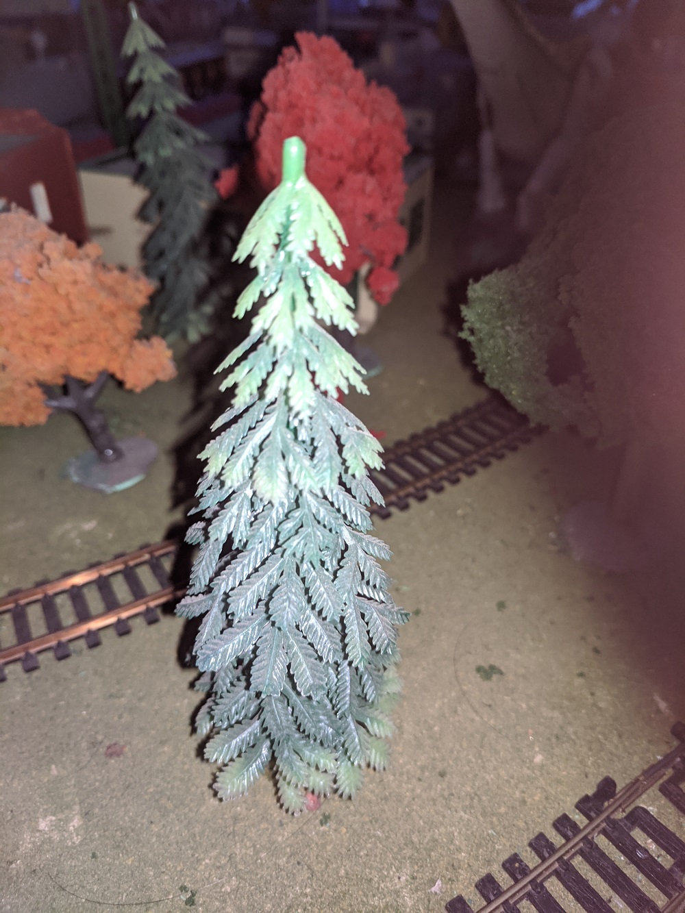 The ubiquitous plastic pine tree. Love these cheezy low end trees.
