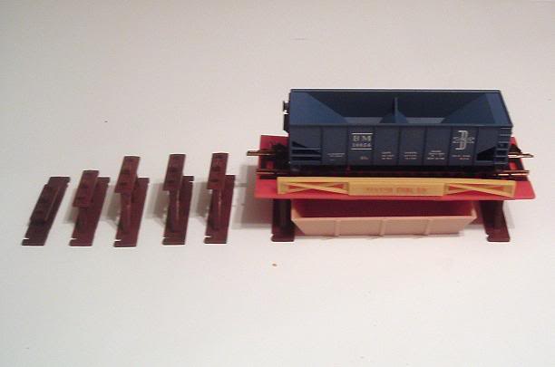 Some freebie Tyco and Mantua operating accessories. The operating hopper ramp has "Mantua Coal Co." printed on the sides.