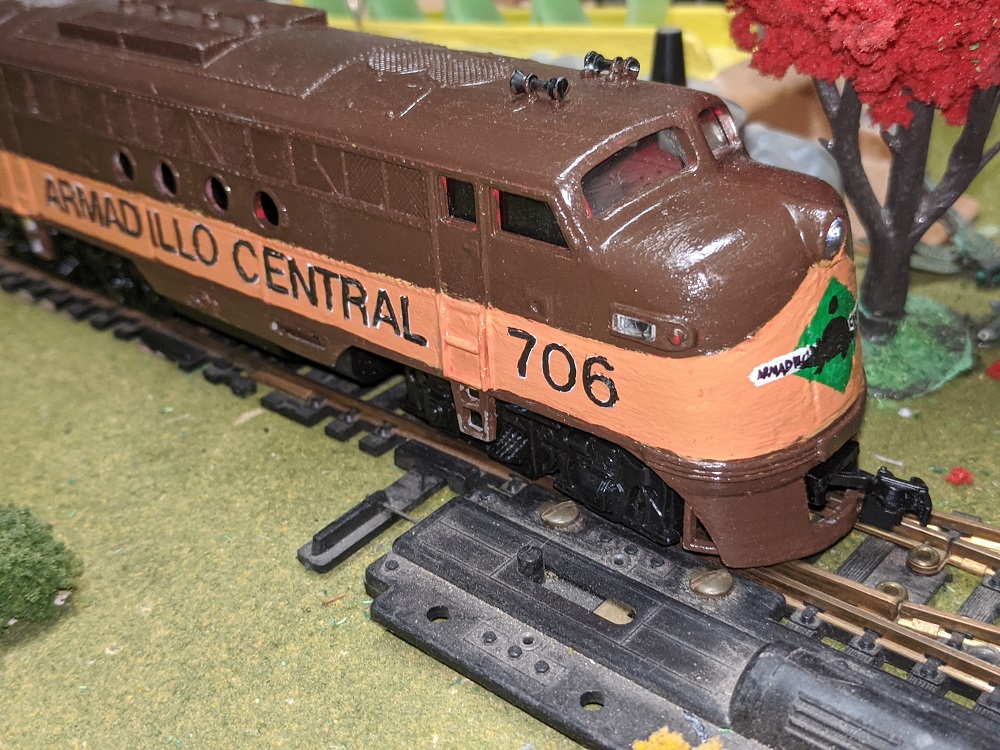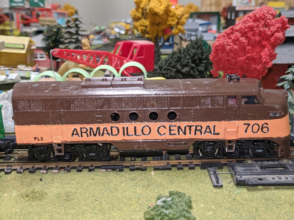 And an Armadilloville Central unit graces the rails. Beautiful handpainted Armadilloville design in 1/87th, hand painted. I believe this to be a Marx piece.