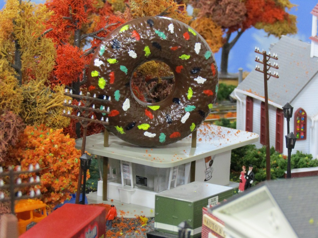 My BOTW offering is the Ephrata Donut Shop, with a re-painted chocolate frosted w. sprinkles donut on the roof.
