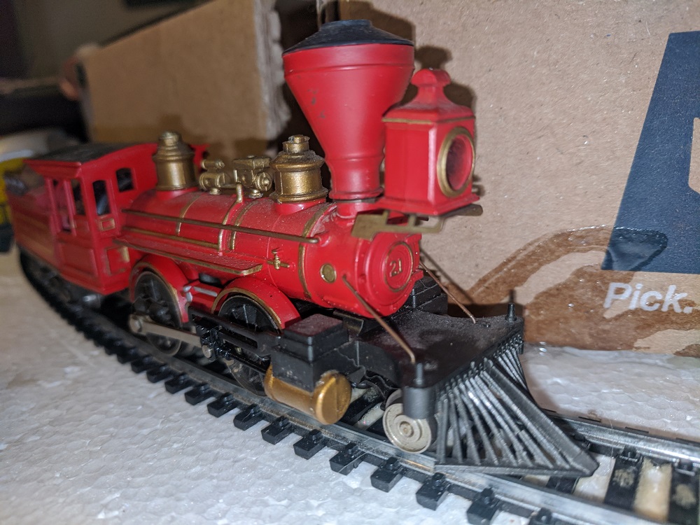 Lovely old Pola American Type testing out Mormon's Gulch. The motor is in the cab, so makes for a much better arrangement than the traditional Bachmann version.