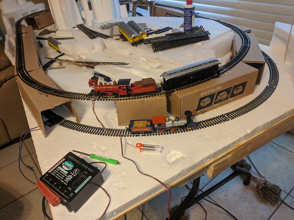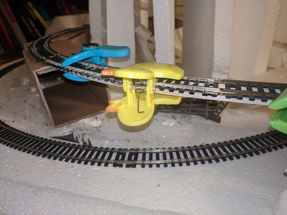 | I suspect alot of your problems with the snap track is due to the flimsy base you've laid it on. But then, I'm an old school, third generation modeler. I tend to overbuild things, and solder my rail joints. If properly laid on a solid subroadbed, even snap track can be made to perform well. Even with EZ track, I think you're going to regret supporting that upper track with cardboard.