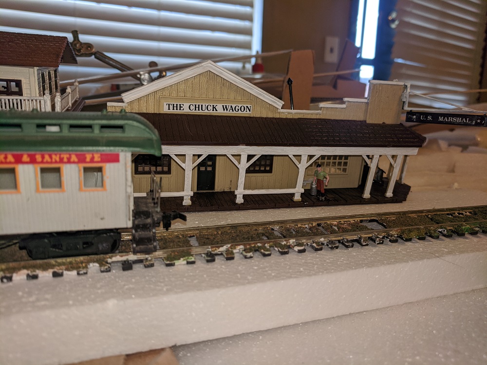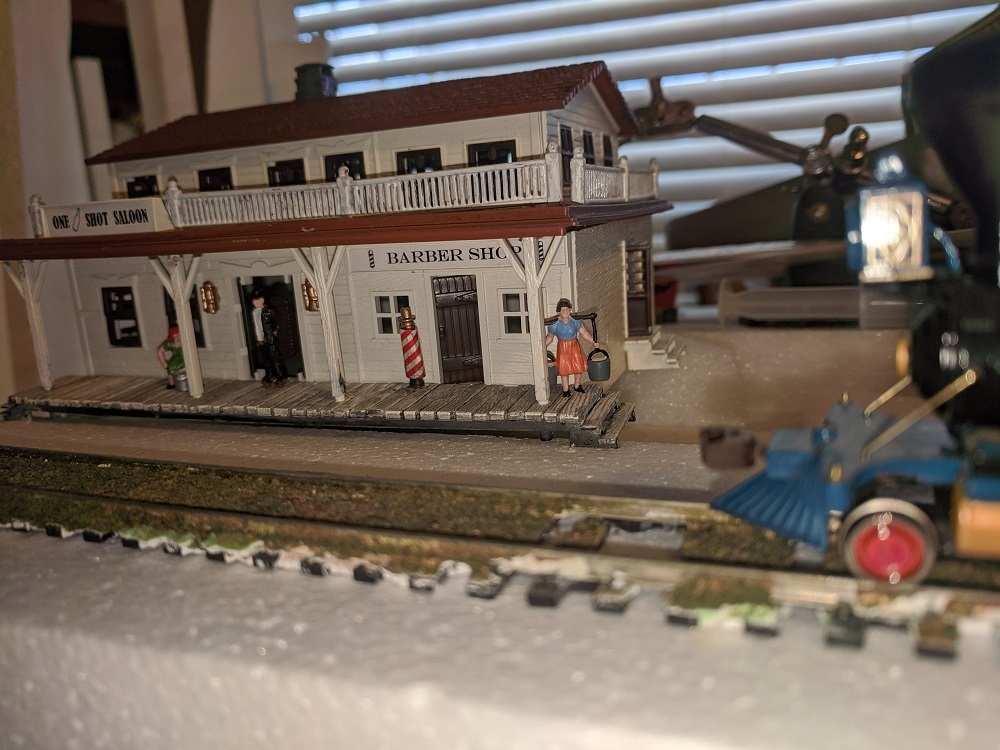 Not sure exactly where to place the finished structures, but this seems about right, very close to the railroad tracks, like the Netflix series, "Hell on Wheels." The latter, BTW, is actually pretty good theatre and is based on many real personages from history. The train shots are particularly well done. I will warn, however, it is definitely "R" rated.