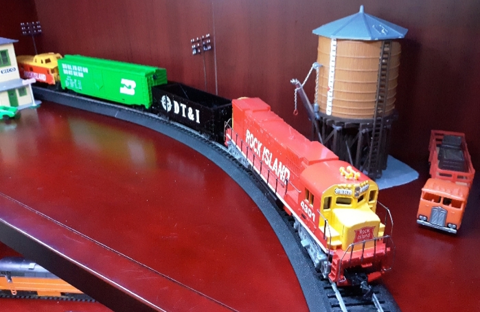 My SOTW will be another "what-if" Tyco set: The Chicagoland Express, featuring a dashing Rock Islaand C430, DT&I operating hopper, BN Boxcar, and a gleaming R.I. Caboose. Aaron Anderson