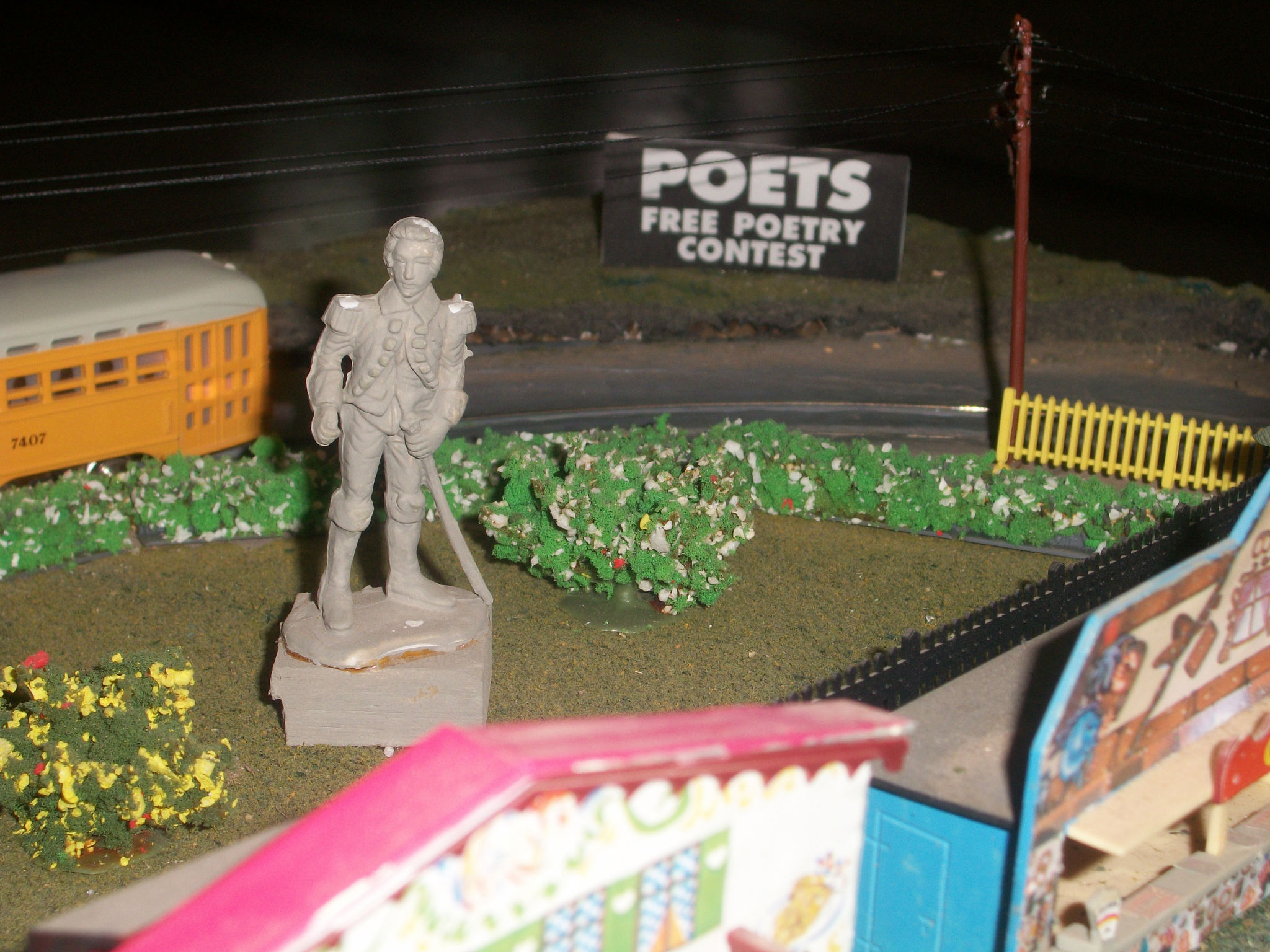 Statue of Senor de Leon-Hablo-Muchacho-Cabrone de la Luis Franco Espinoza de Quatro Rojo El Grande de Francostenineo (No relation to El Rojo Grande) on the Smeltertown Trolley Layout.
