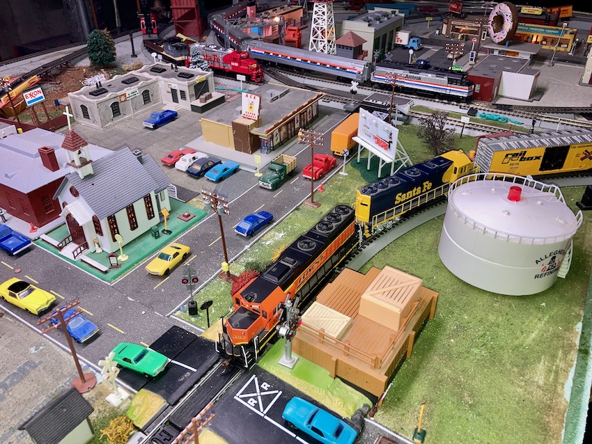 For a while I had a blank space on my 11x8 L-shaped layout, near the TYCO lighted signal crossing and Bachmann blinking oil tank, and across from my Life-Like Town Church and Ace Supermarket. But a while back I got a nice accessory to put in that space...