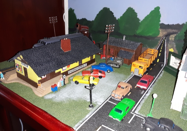 I was finally able to get to the next town over to purchase a roll of road tape, so I was able to finish up my little city diorama. Here are the results.