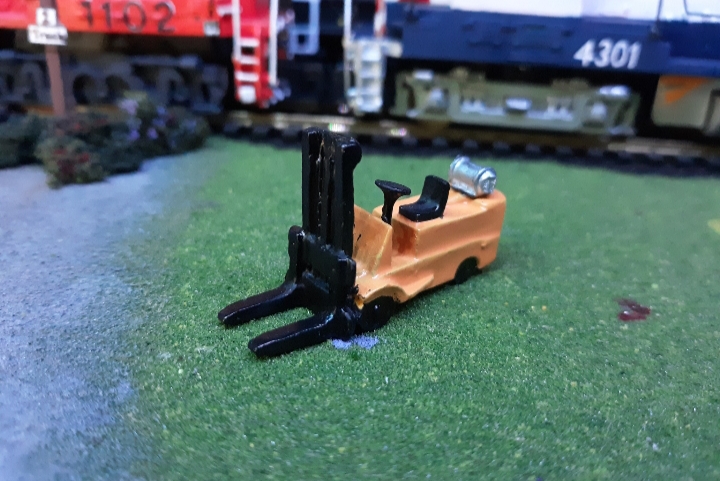 So a while back, I order a Kramer Metal Products HO forklift. Unfortunately I ordered the V1, which was really small for my shop forklift. Currently it resides on the platform of the EVRR station. I decided to give KMP a second chance, and purchased a V2 forklift. It's much larger, and fits my shop just perfectly. I'm very happy with this one, and I have a KMP bulldozer on the way too.