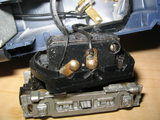 Alco Fan, I recently got one of those trucks in a collection of parts, and the brush holders are the rivets that hold the contacts on the plate - in other words, they can't be budged. I didn't have too much trouble locating the brushes and springs and reinstalling the plate.